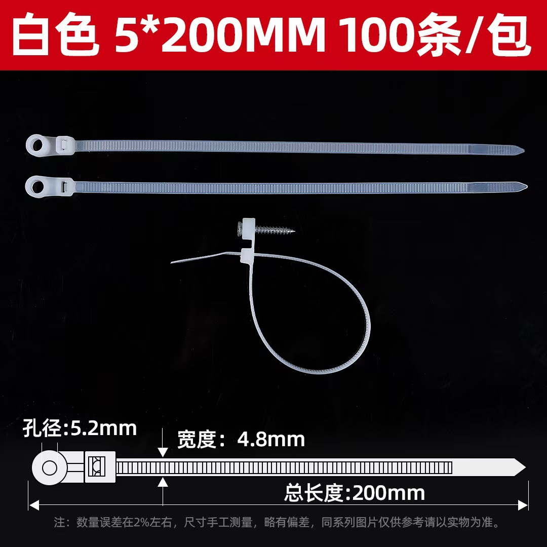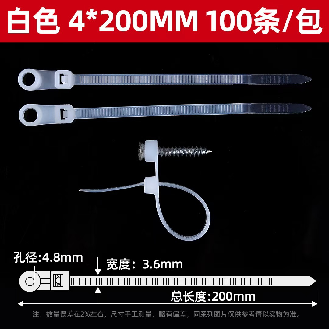 고정형 나일론 케이블 타이 내한성 나사 구멍 케이블 타이 4X150/ 5X200 나사 구멍이 있는 내한성 나일론 케이블 타이