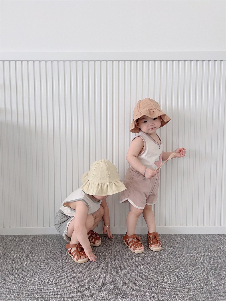 한국식 인 아동복 캐주얼 모든 매치 서양식 세트 동물 민소매 여름 시원한 얇은 나가는 남성과 여성의 두 조각