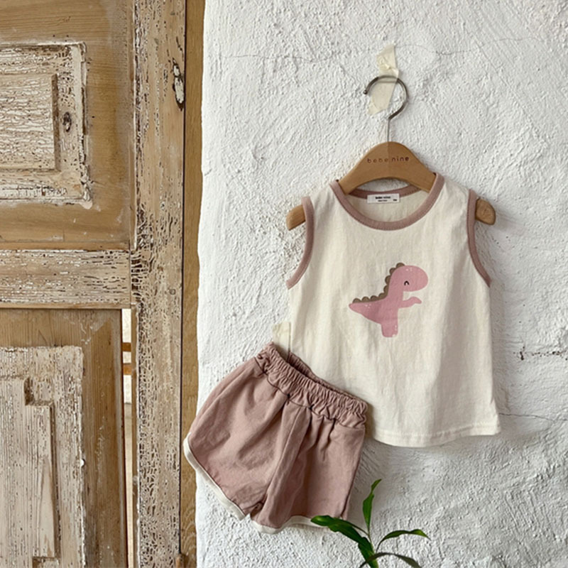 한국식 인 아동복 캐주얼 모든 매치 서양식 세트 동물 민소매 여름 시원한 얇은 나가는 남성과 여성의 두 조각스토어 가기