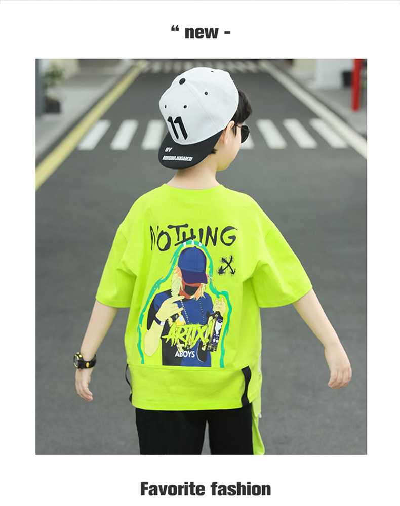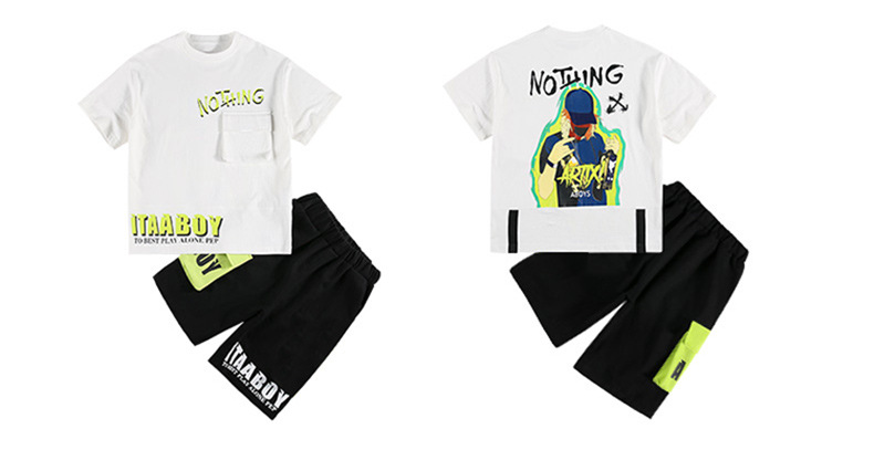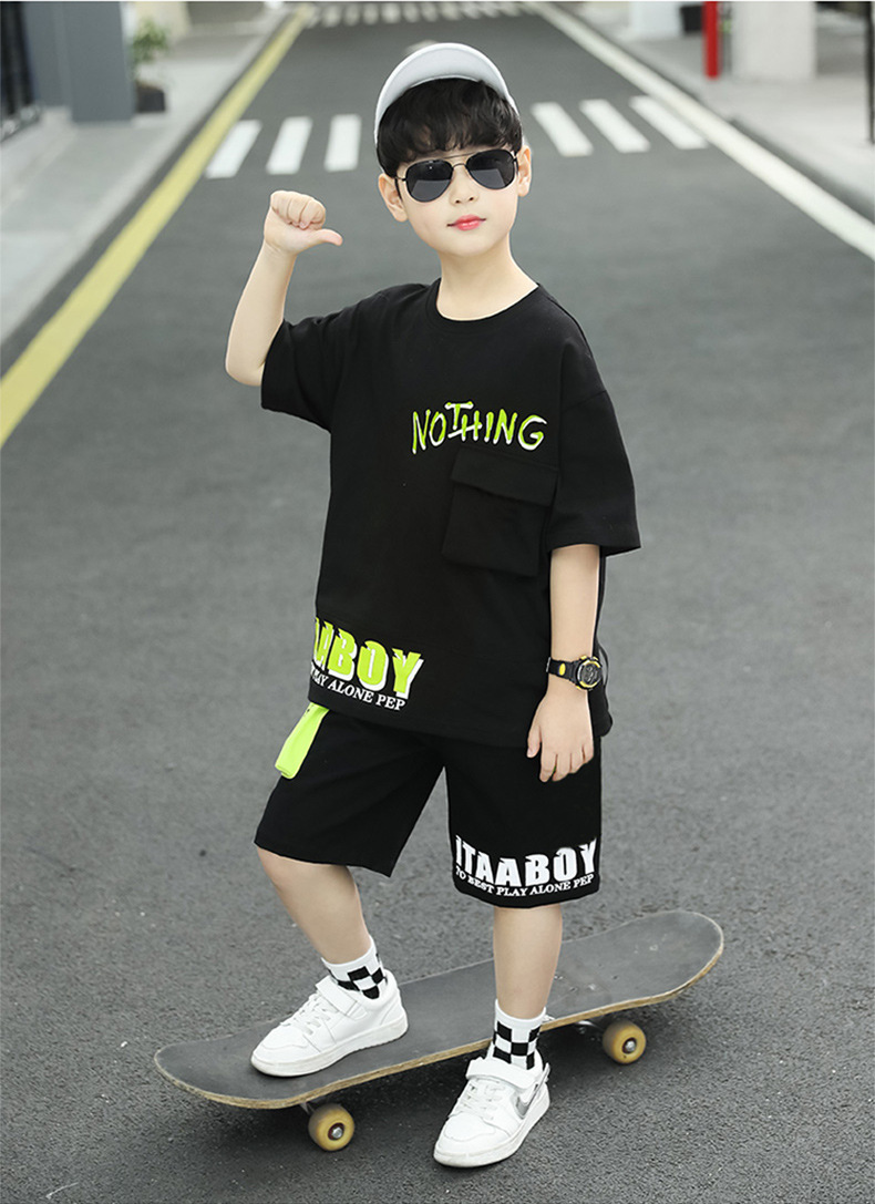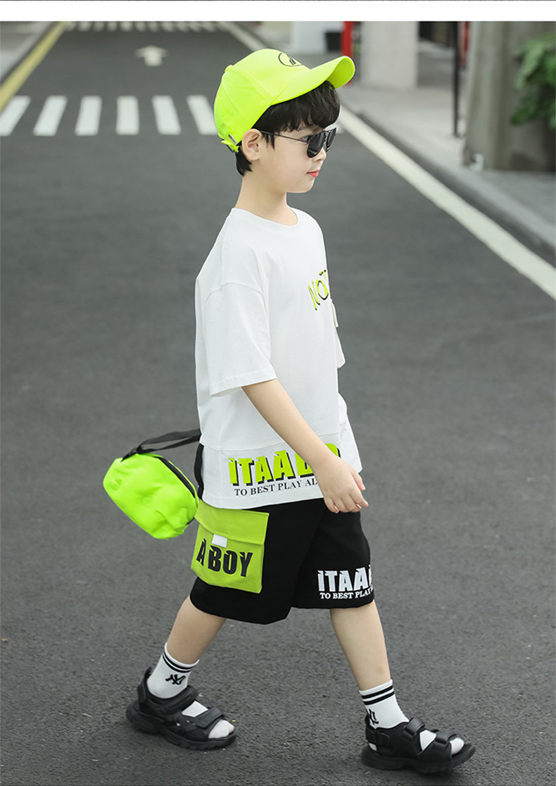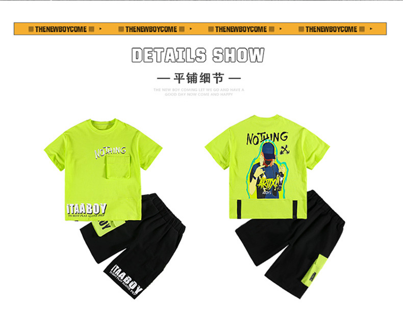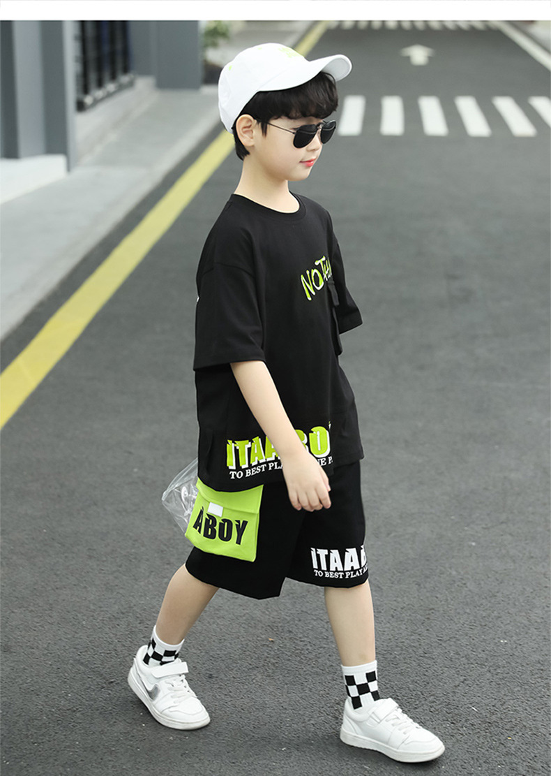 여름 얇은 소년 느슨한 컬러 블록 반팔 티셔츠 반 반바지 세트 학생 유행 캐주얼 투피스 세트스토어 가기