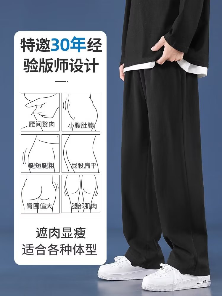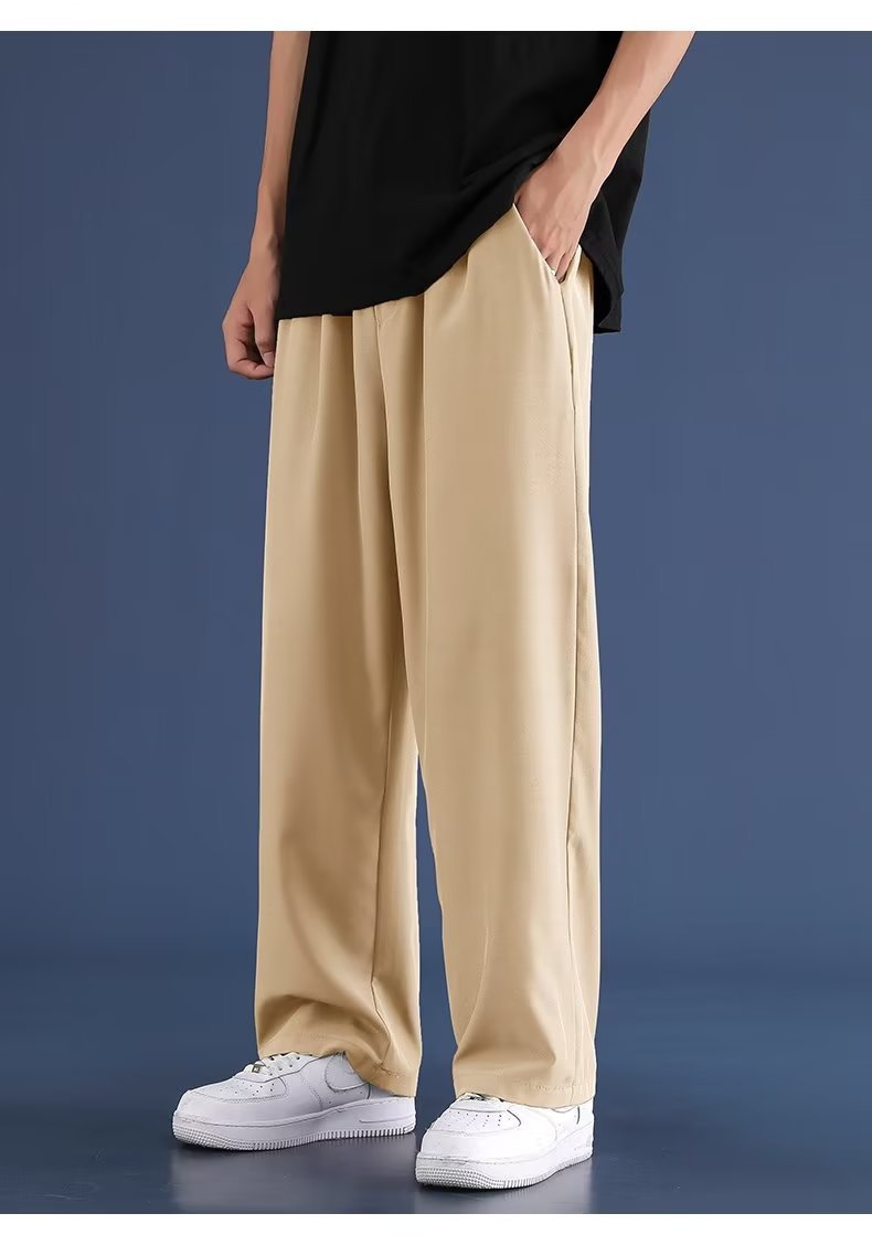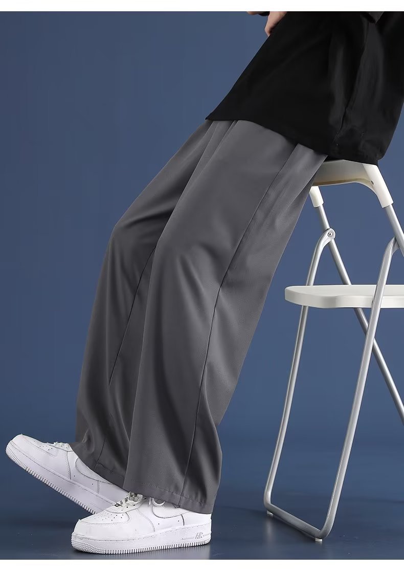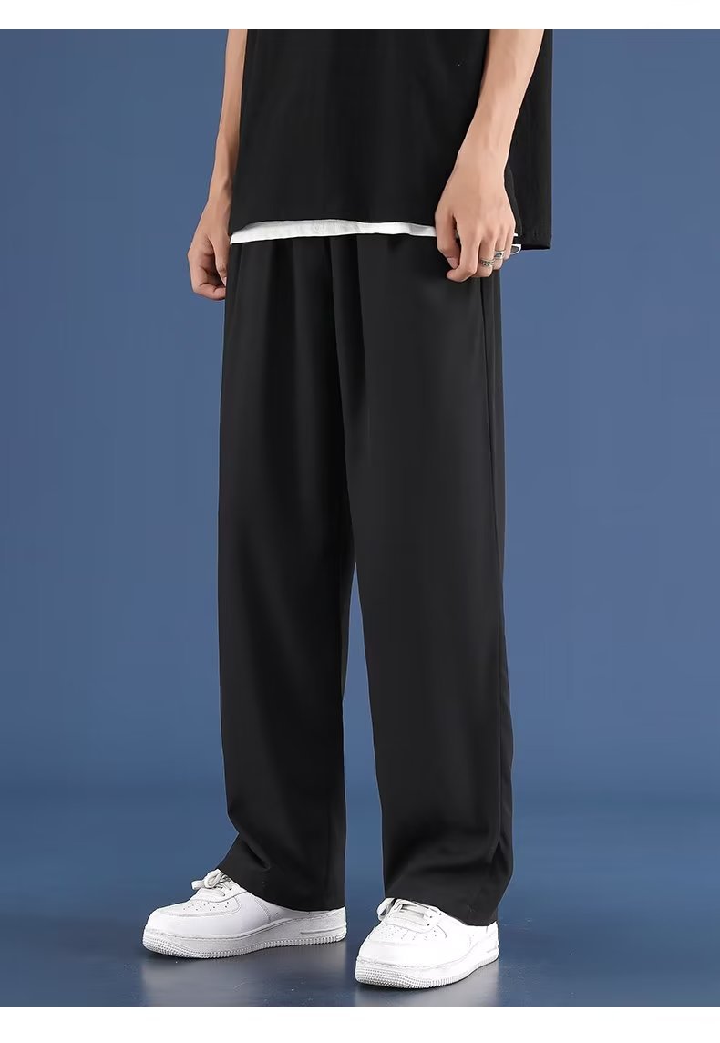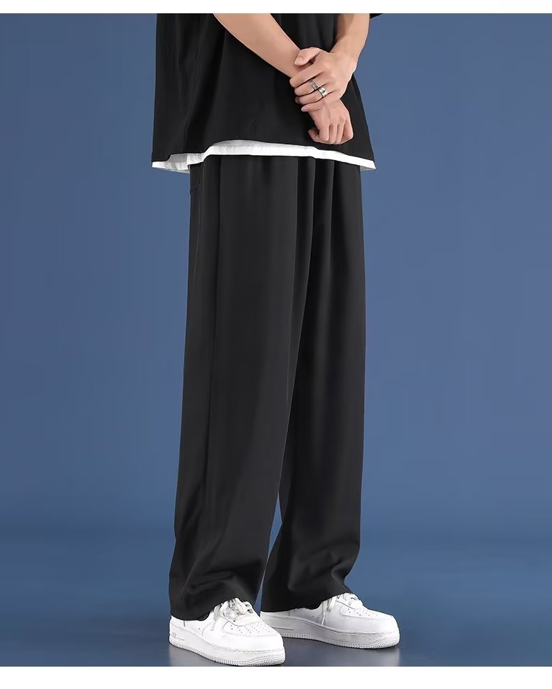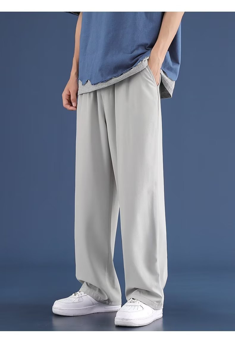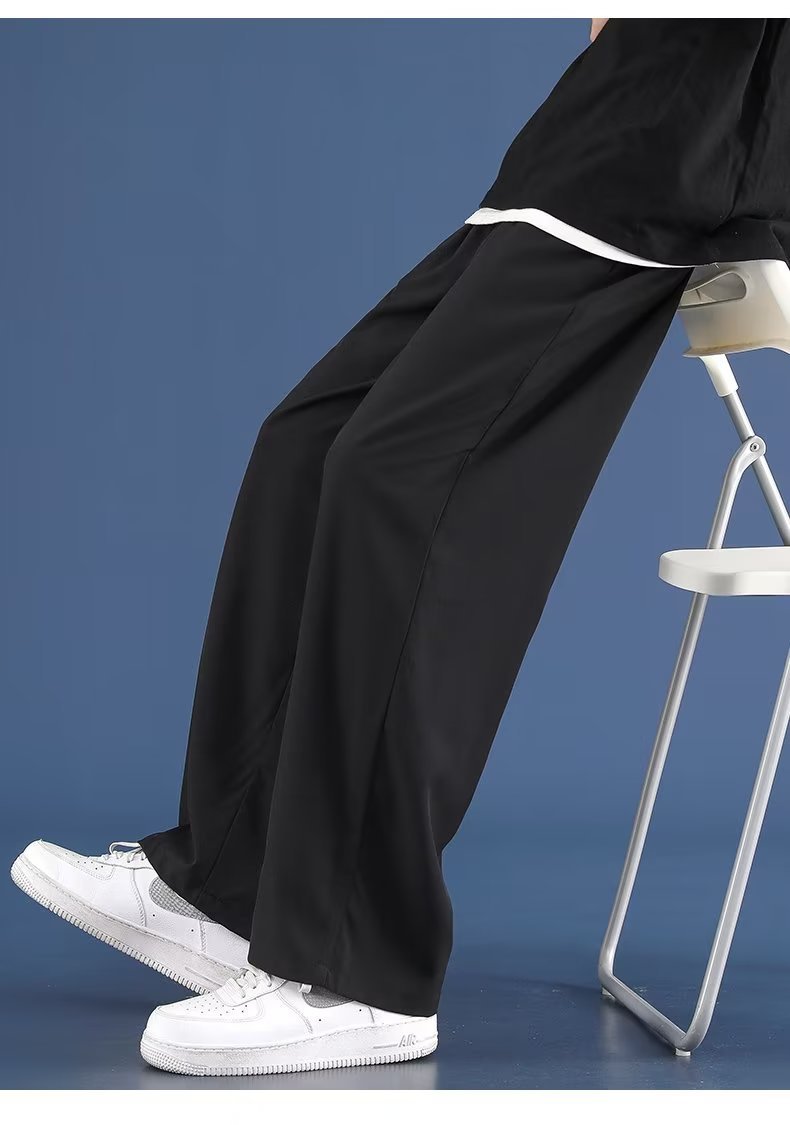 아이스 실크 캐주얼 바지 남자의 여름 얇은 스트레이트 느슨한 와이드 레그 블랙 바지 걸레 세트 바지 매달려