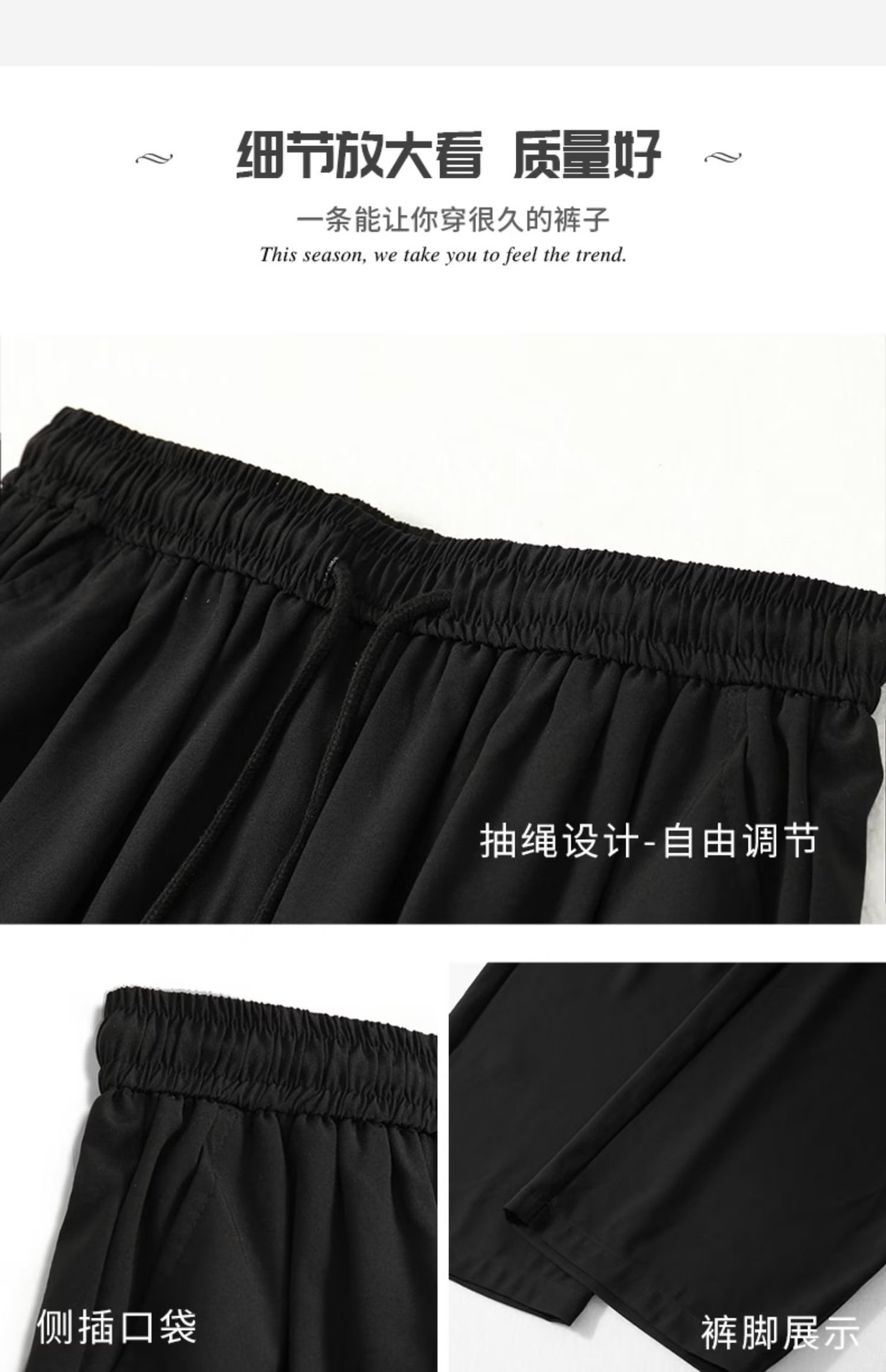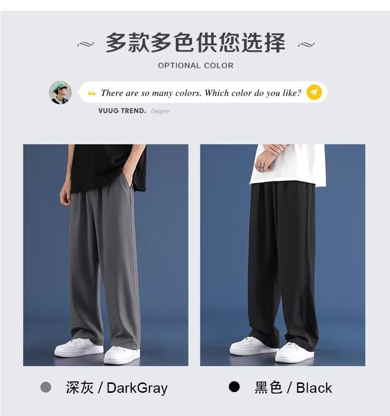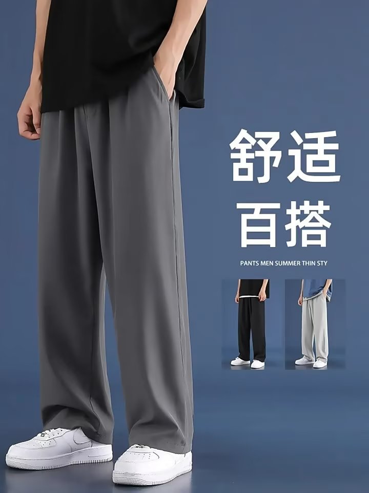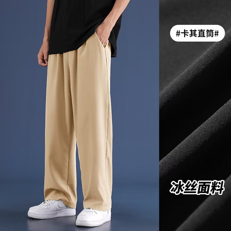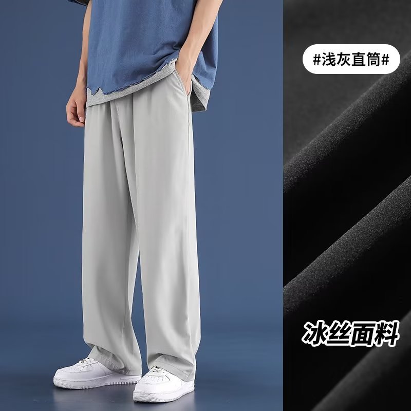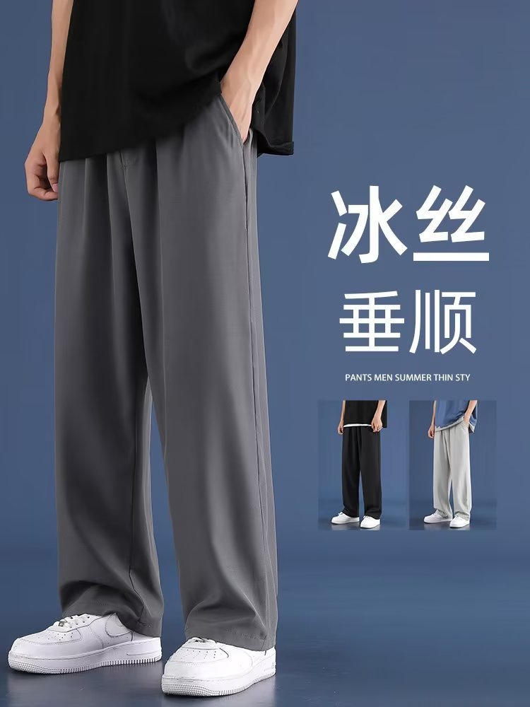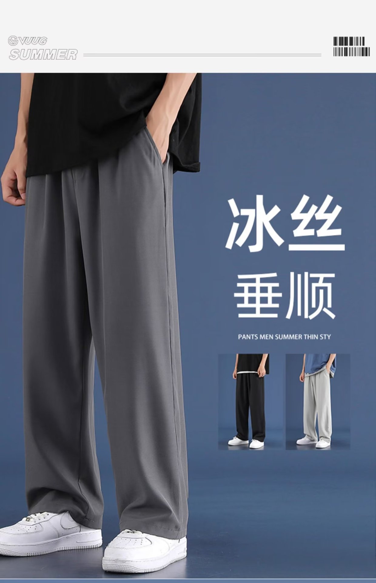 아이스 실크 캐주얼 바지 남자의 여름 얇은 스트레이트 느슨한 와이드 레그 블랙 바지 걸레 세트 바지 매달려스토어 가기