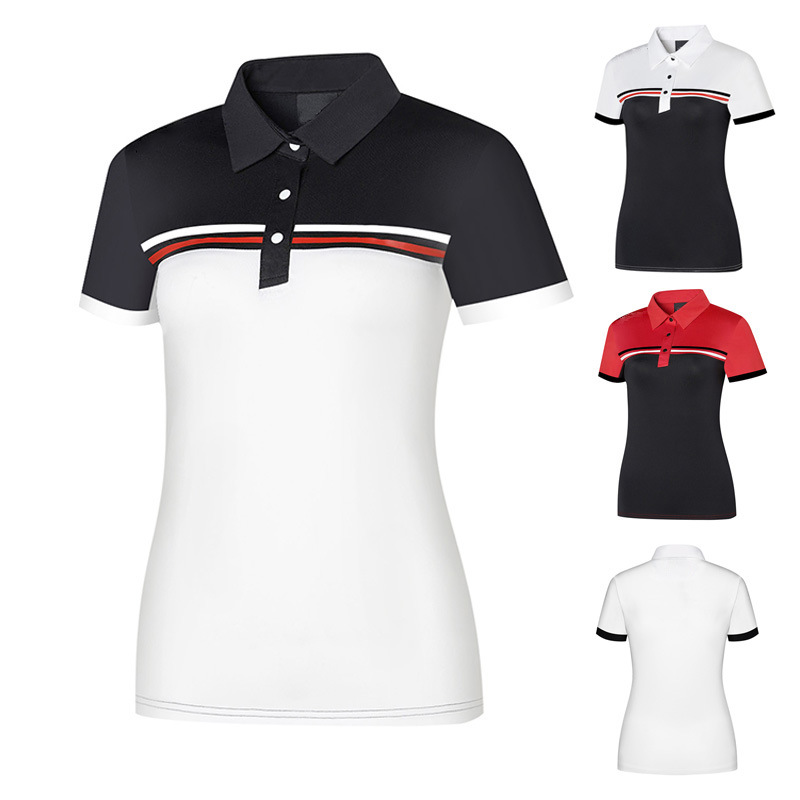골프 의류 여름 여성용 스플라이싱 심플 반팔 테니스웨어 루즈하고 편안한 폴로 셔츠 스포츠 티셔츠스토어 가기