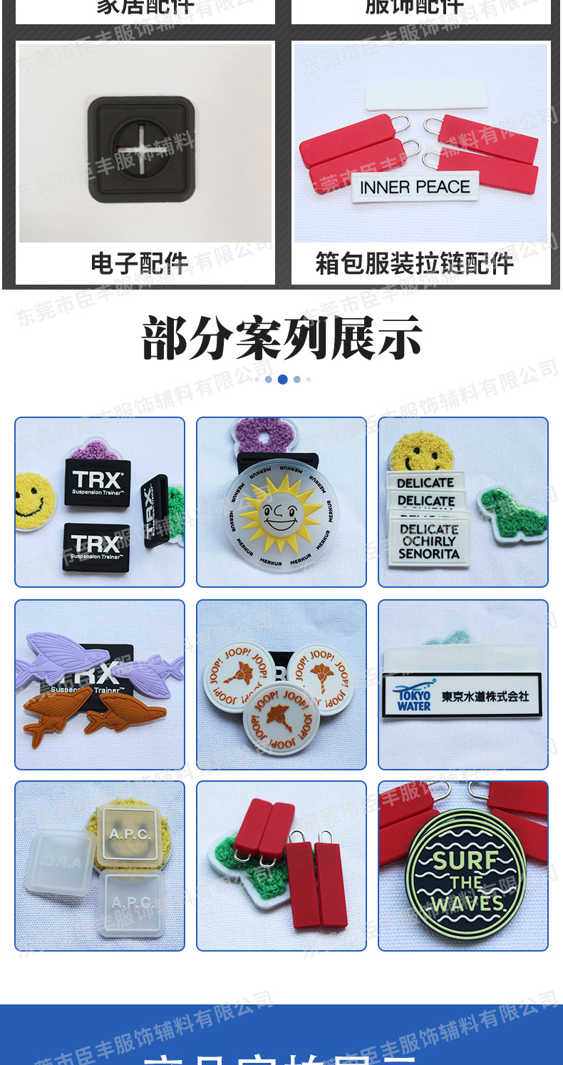 3 차원 3D 의류 실리콘 장 섬유 액세서리 가구 가방 상표 로고 장식 부드러운 고무 장 드롭 지퍼 헤드스토어 가기