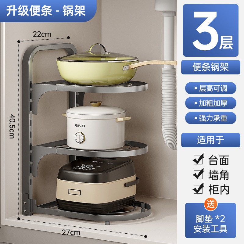 주방 다층 저장 랙 가정용 다기능 캐비닛 싱크 쿠커 탄소 강철 레이어 냄비 랙 저장 랙스토어 가기