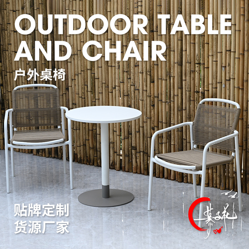 야외 테이블과 의자 발코니 간단한 레저 야외 테이블과 의자 알루미늄 합금 야외 방수 및 자외선 차단제 등나무 식탁과 의자 공장스토어 가기