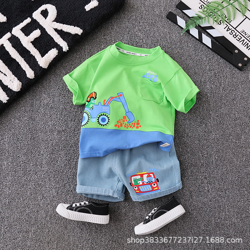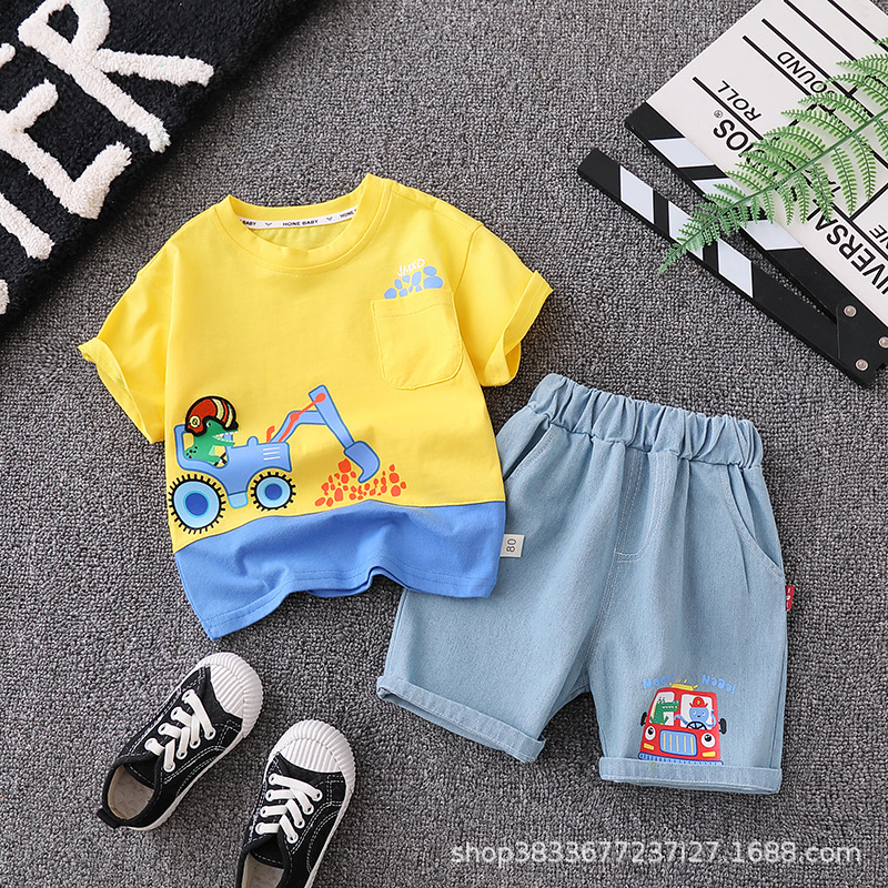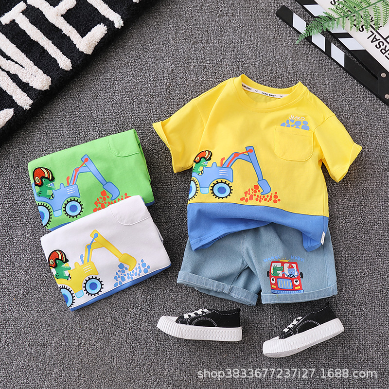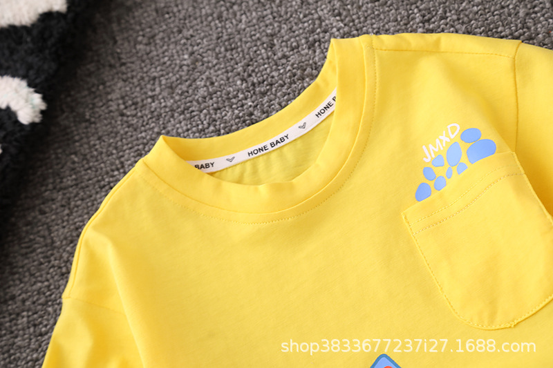 소년의 외국 스타일 만화 면화 파는 반팔 2 종 여름 새로운 남성 아동복 세대의 세트 세트스토어 가기