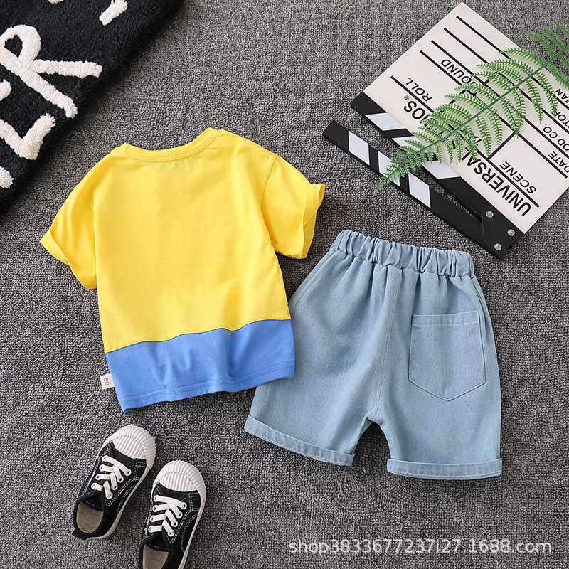 소년의 외국 스타일 만화 면화 파는 반팔 2 종 여름 새로운 남성 아동복 세대의 세트 세트