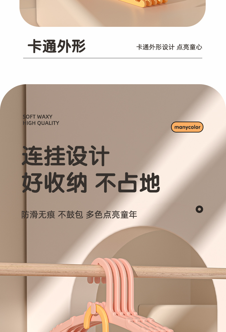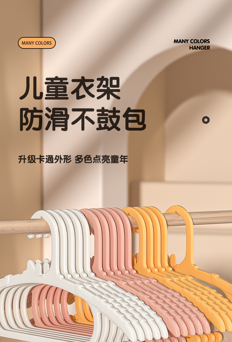 Yibiao Douyin의 새로운 어린이 옷걸이, 미끄럼 방지 플라스틱 옷걸이, 아기 가정용 옷걸이, 흔적 없는 옷걸이