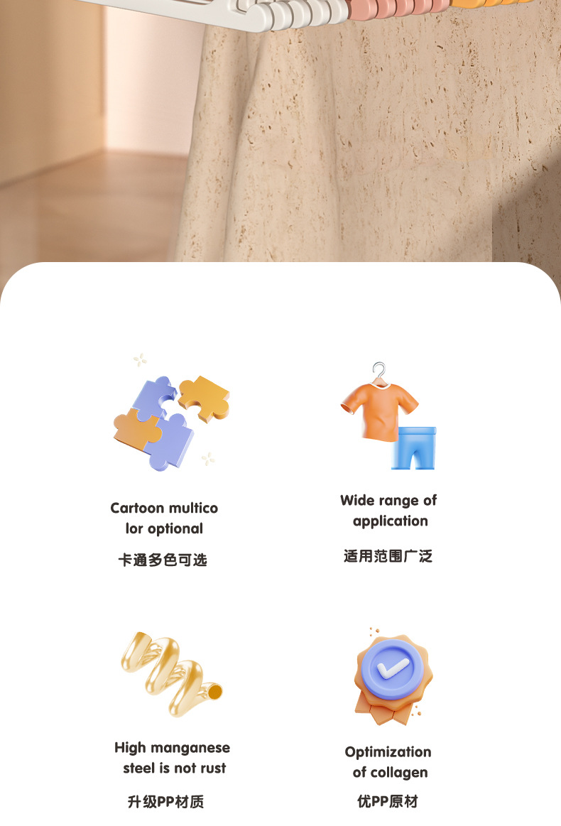 Yibiao Douyin의 새로운 어린이 옷걸이, 미끄럼 방지 플라스틱 옷걸이, 아기 가정용 옷걸이, 흔적 없는 옷걸이스토어 가기