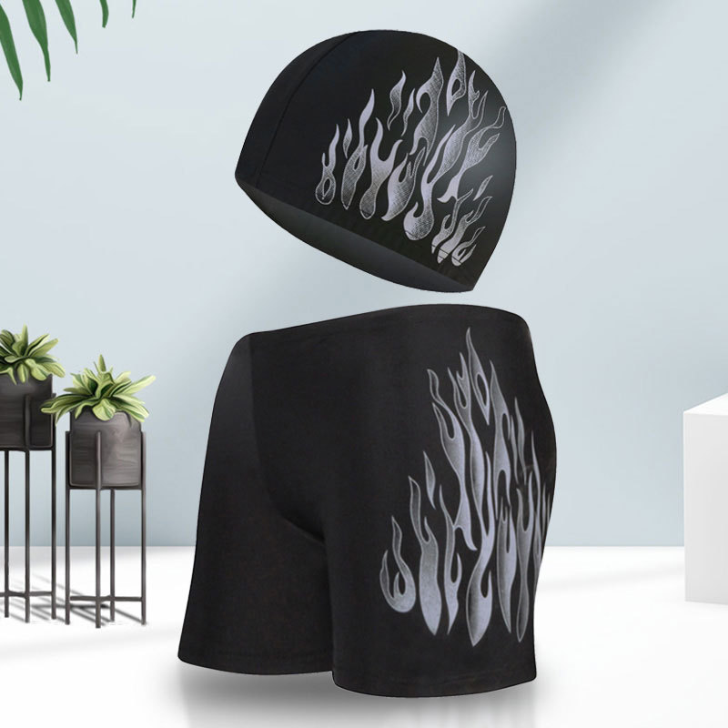 泳裤男平角大码游泳裤男士时尚火焰温泉泳裤泳帽套装专业游泳装备