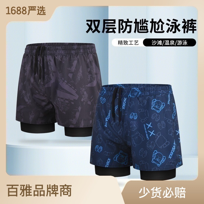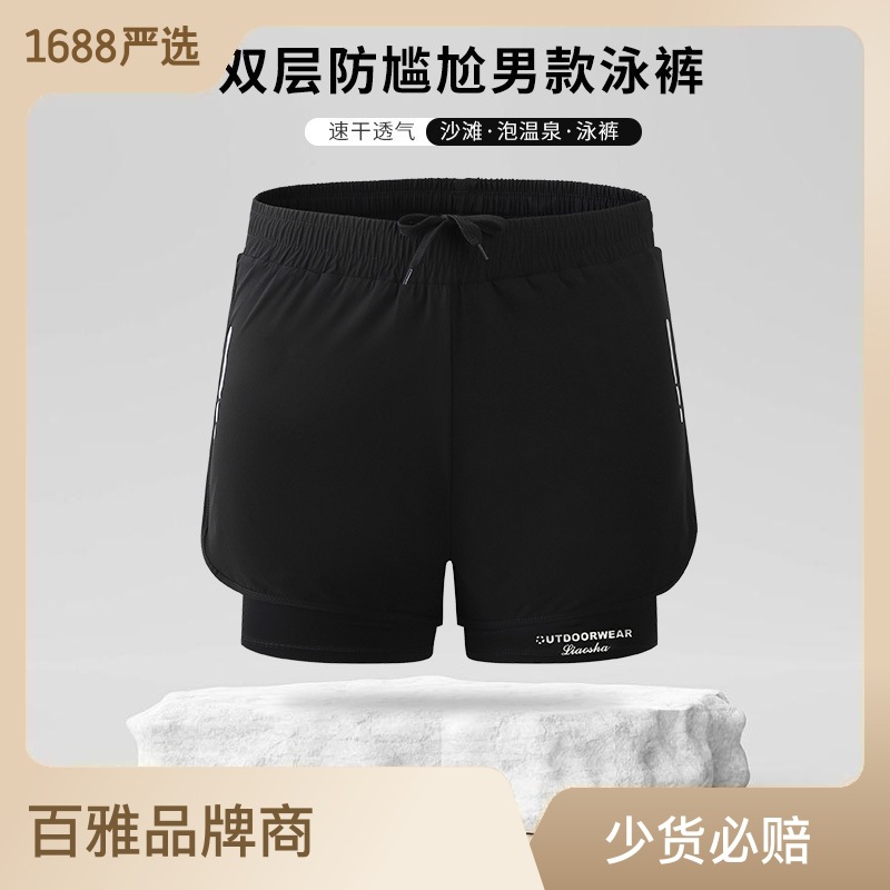 双层男士泳裤防尴尬平角双层跑步运动游泳健身宽松大码泡温泉装备