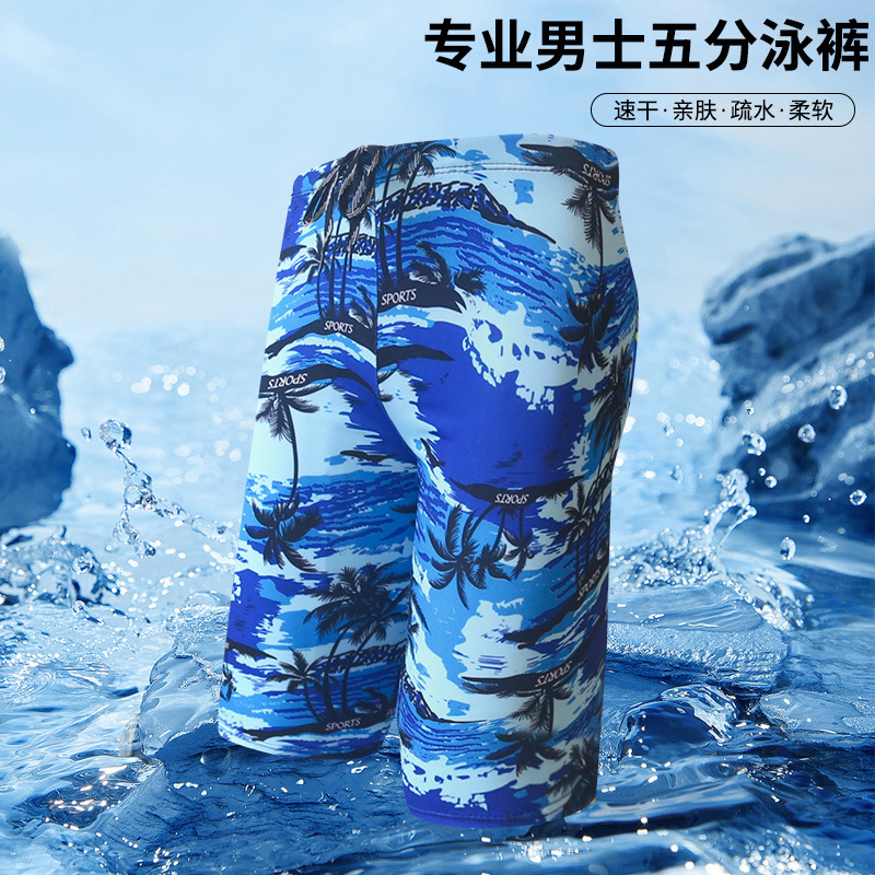 成人男士泳裤新款沙滩游泳馆泡温泉时尚印花舒适透气牛奶丝游泳裤