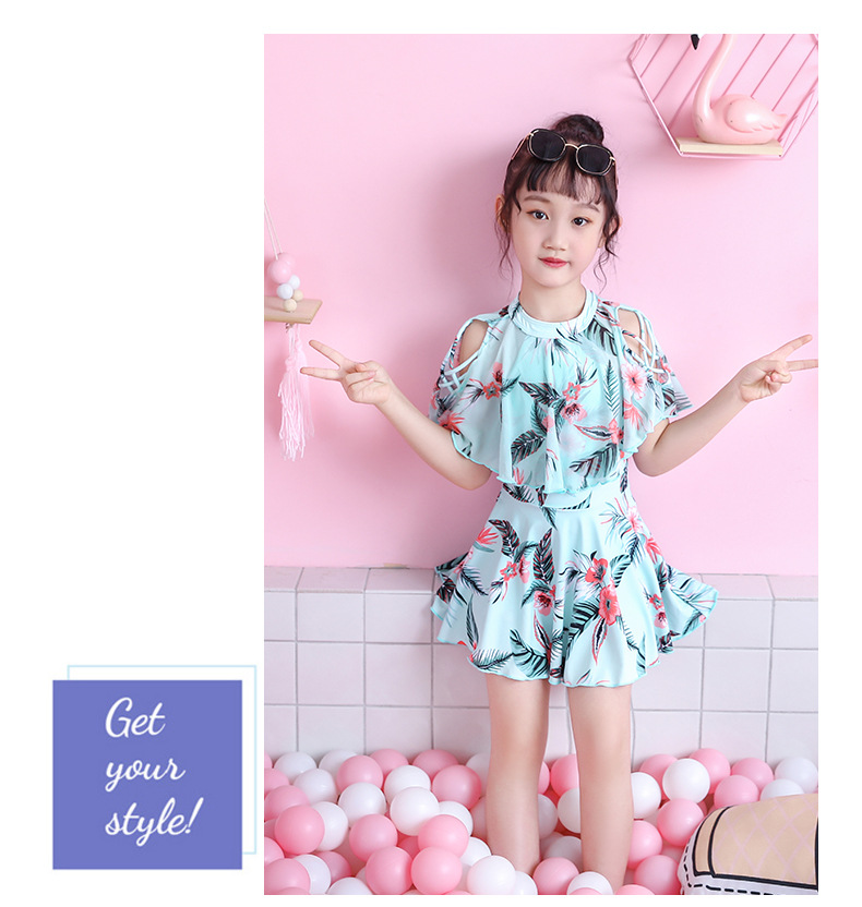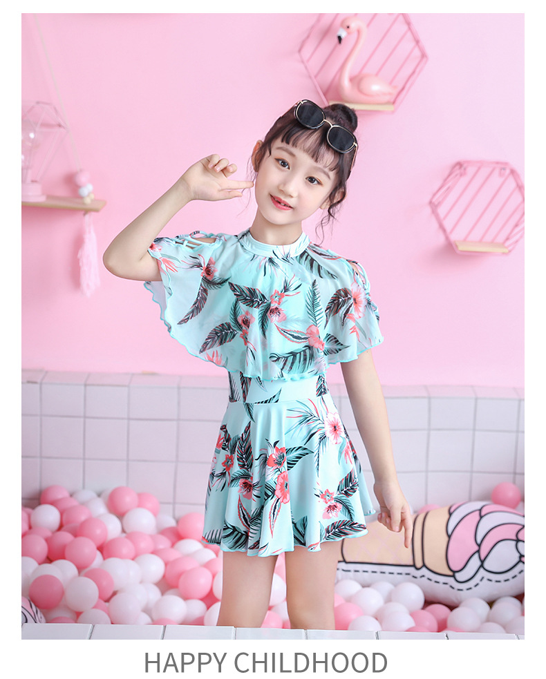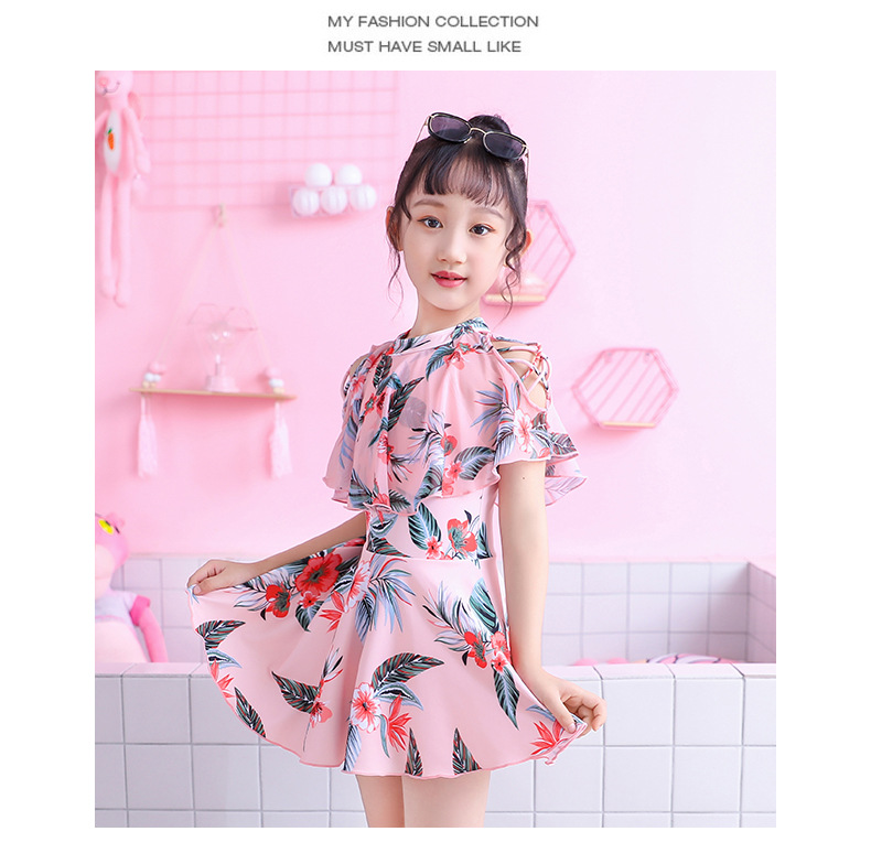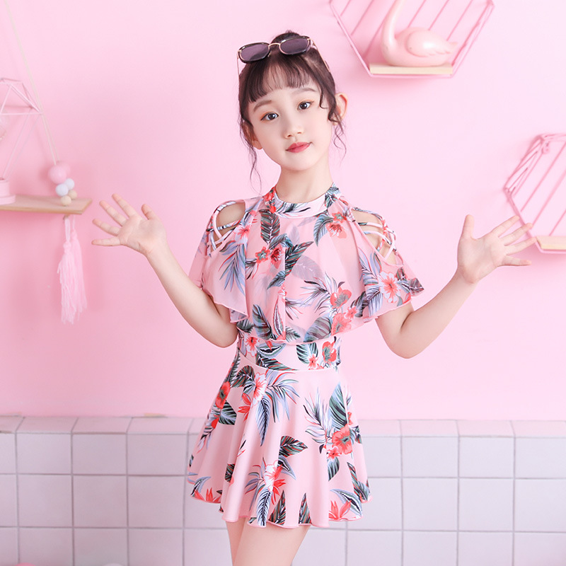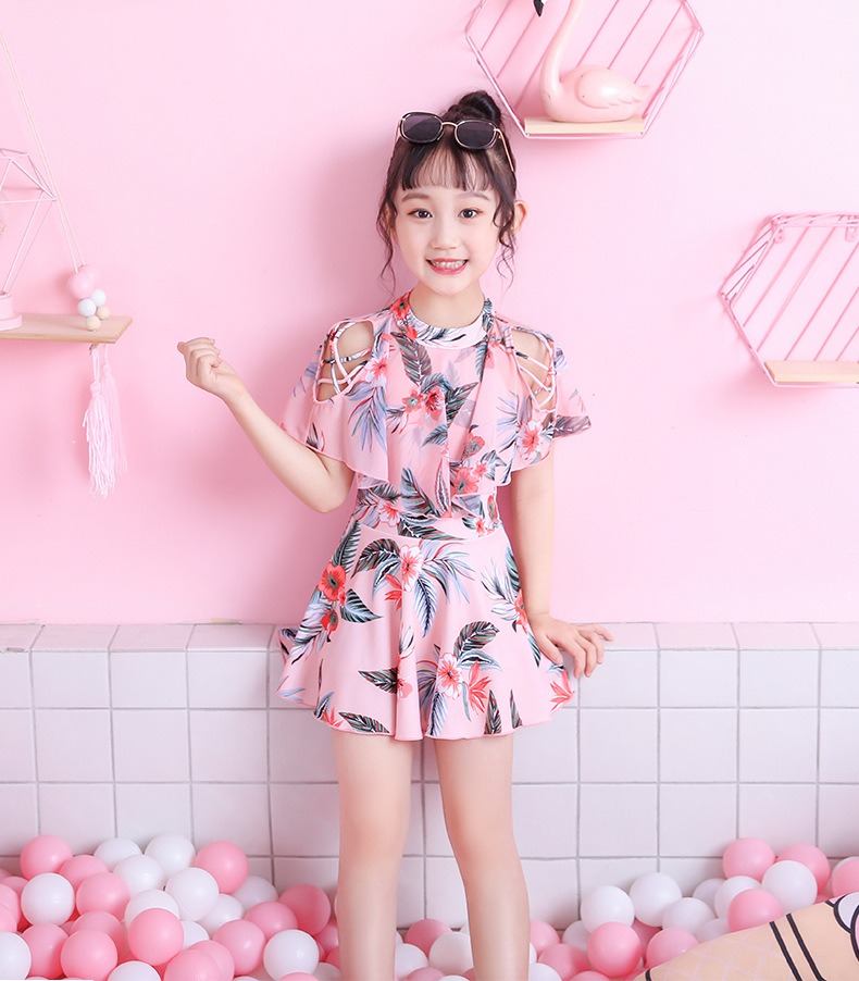 어린이 수영복 여성용 중소 어린이 귀여운 인쇄 한국 공주 소녀의 귀여운 원피스 스커트 온천 수영복