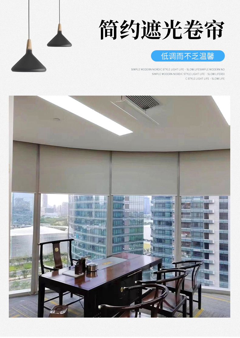 두꺼운 완전 차광 롤스크린 사무실 차양 단열 방수 무타공 커튼 엔지니어링 전동 단열 자외선 차단