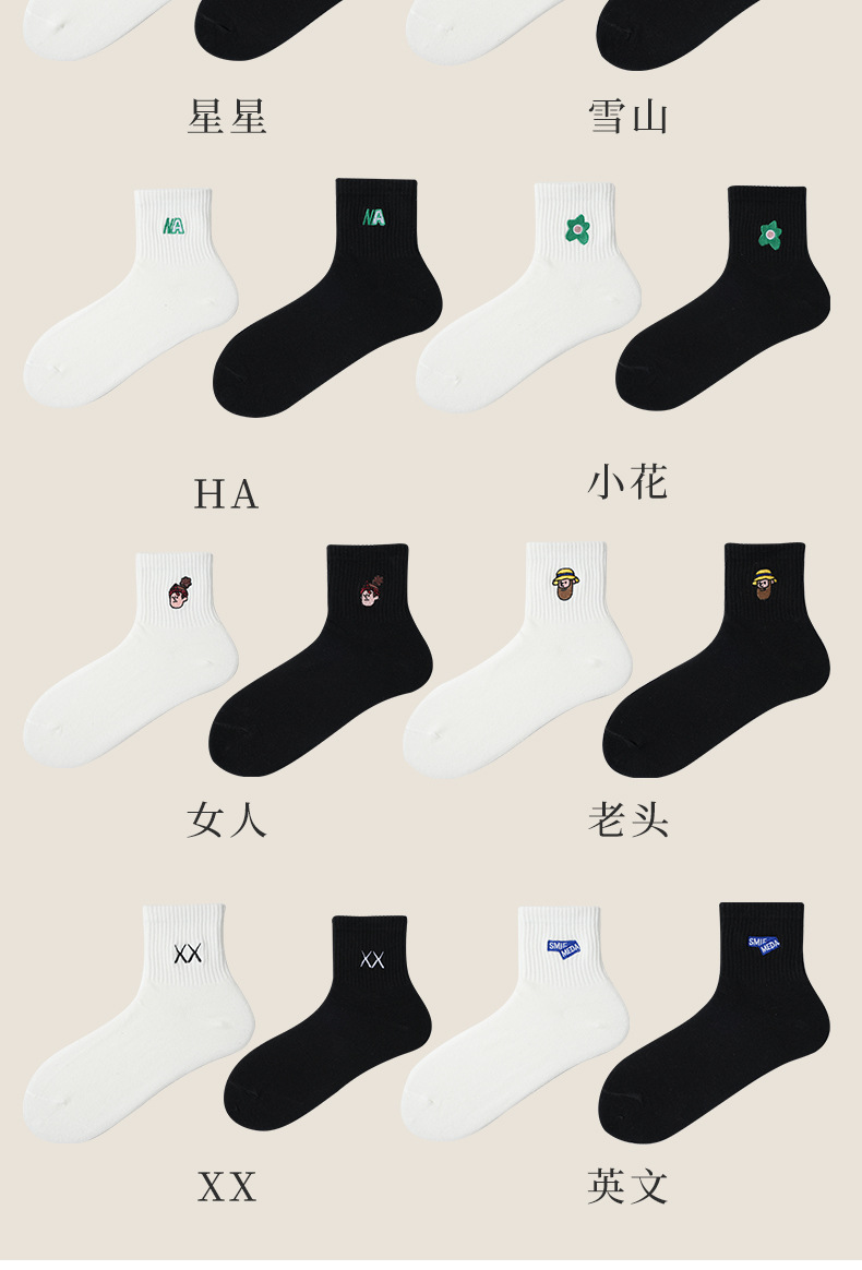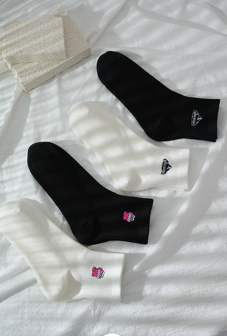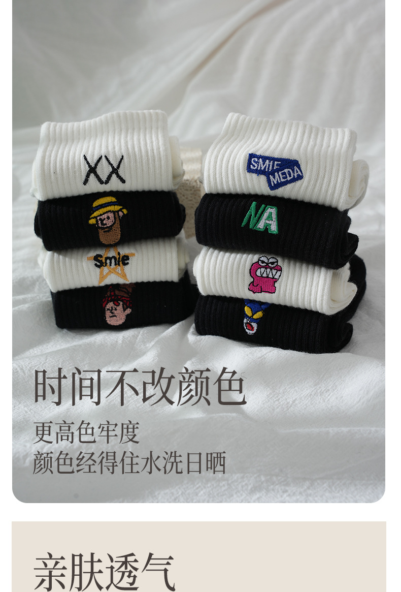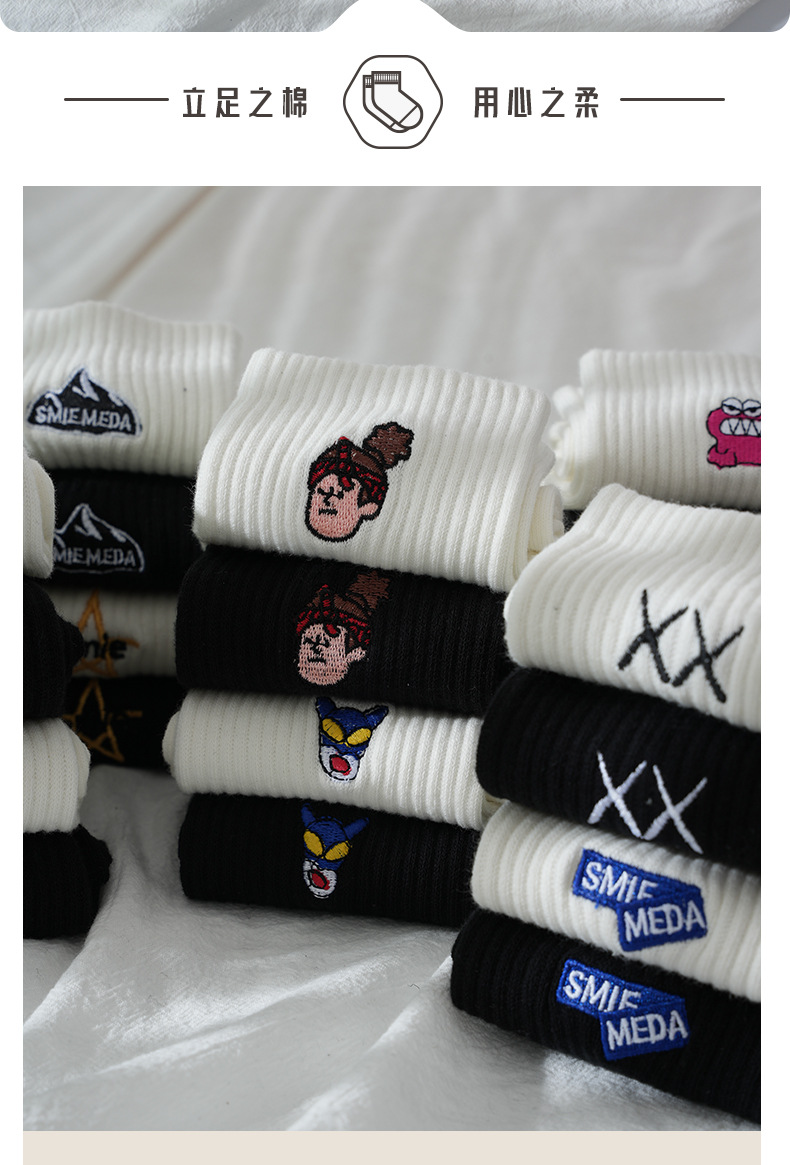 남성용 면화 여름 미드 튜브 땀 흡수 탈취제 통기성 얇은면 양말 트렌디 한 소년 자수 흰색 양말스토어 가기