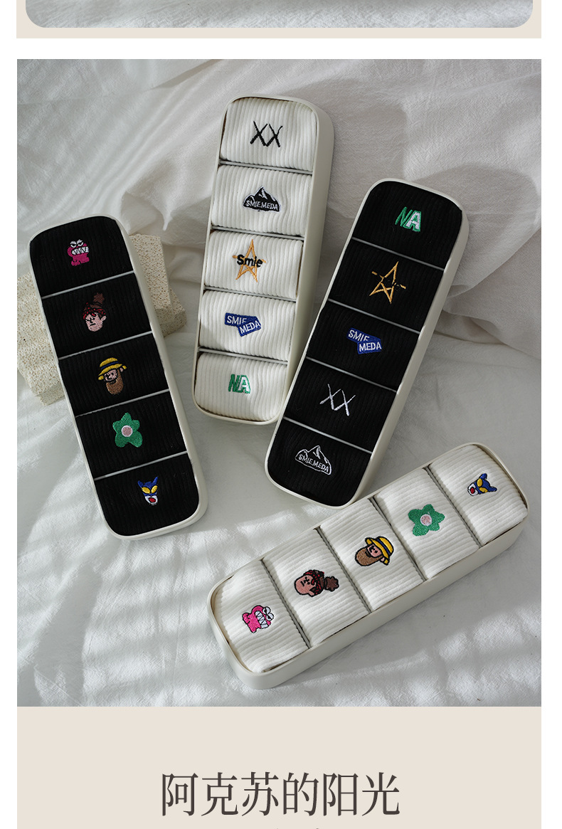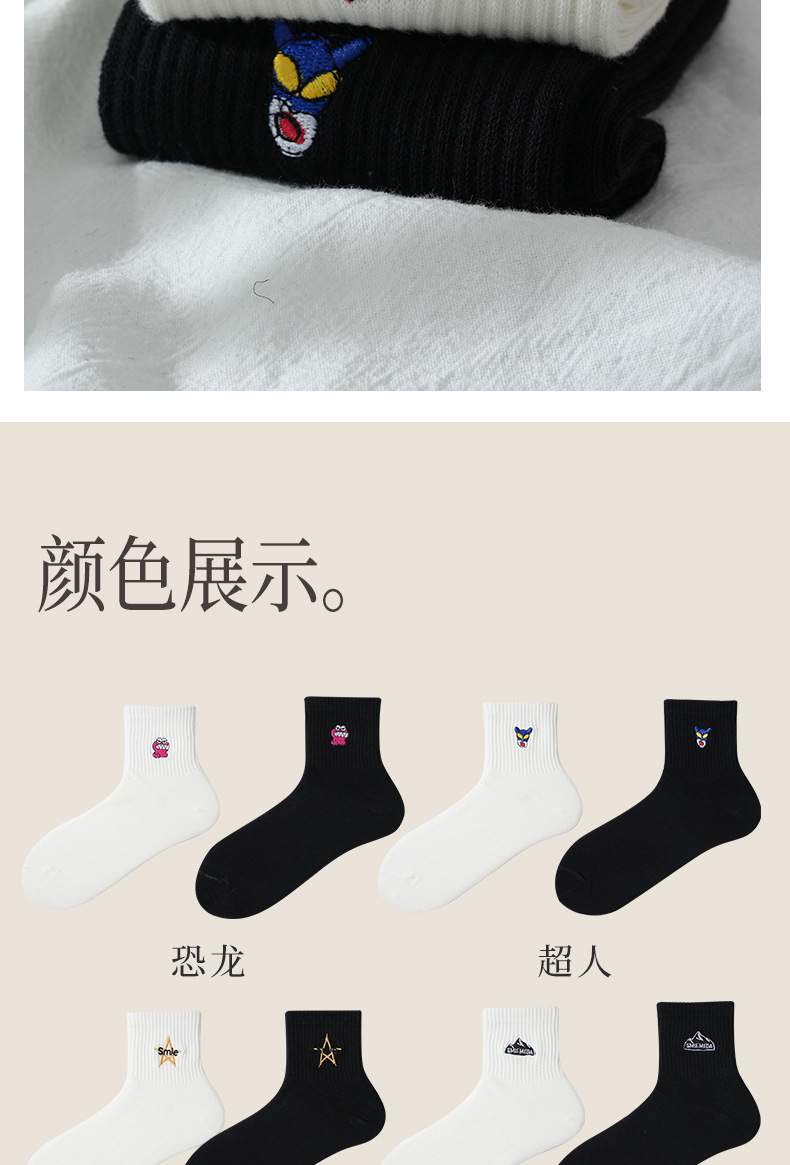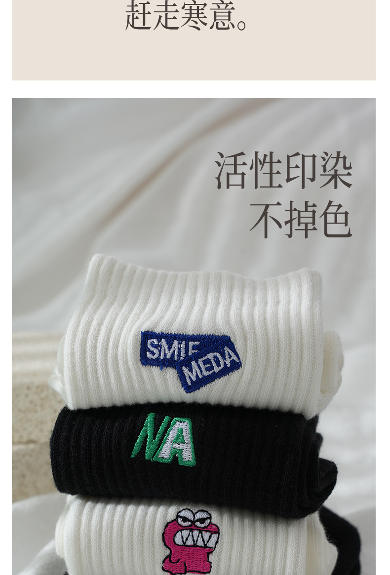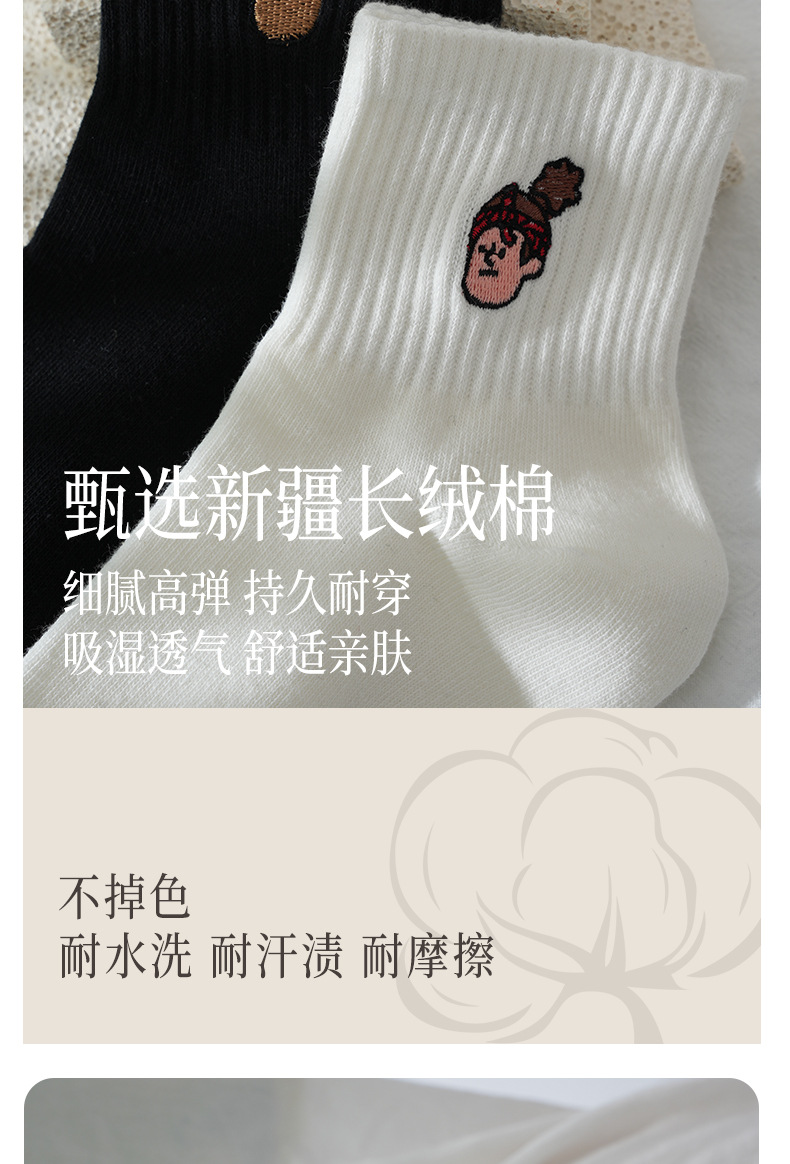 남성용 면화 여름 미드 튜브 땀 흡수 탈취제 통기성 얇은면 양말 트렌디 한 소년 자수 흰색 양말스토어 가기