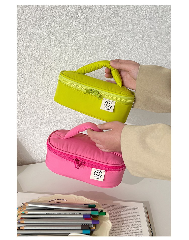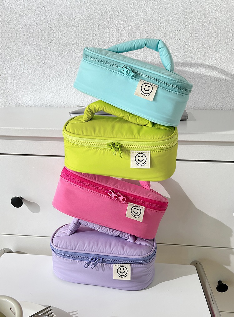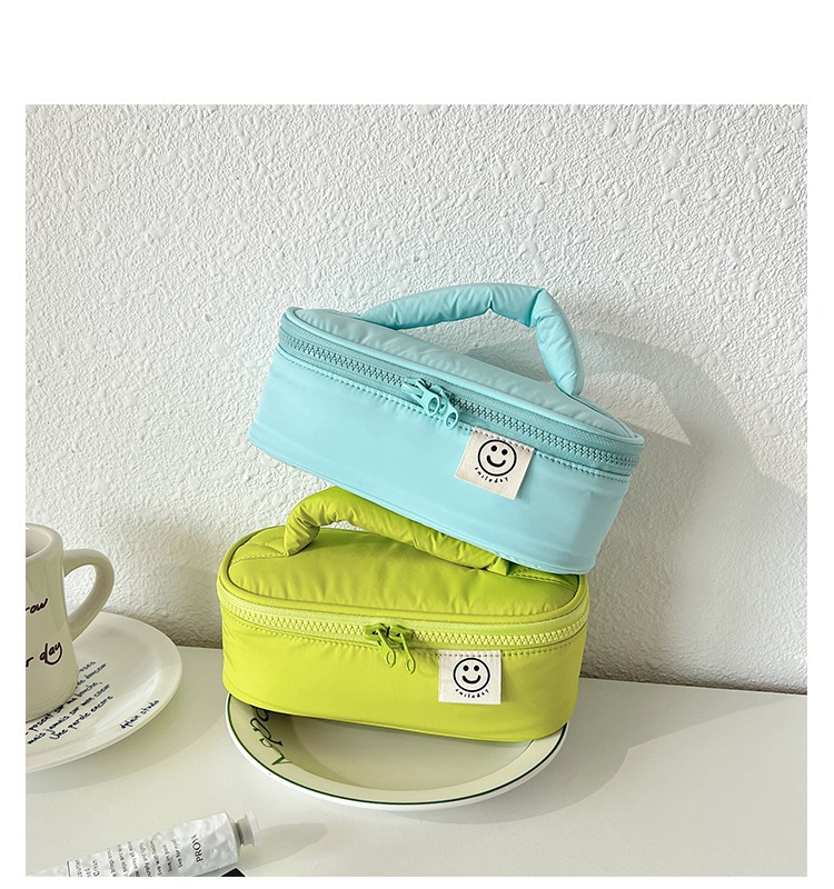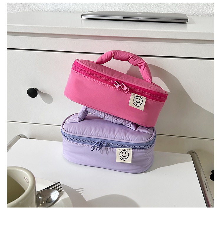 일본식 심플 뉴 스마일 페이스 휴대용 화장품 가방 여성용 틈새 화장품 보관 가방 나가는 휴대용 세탁 가방 상자스토어 가기