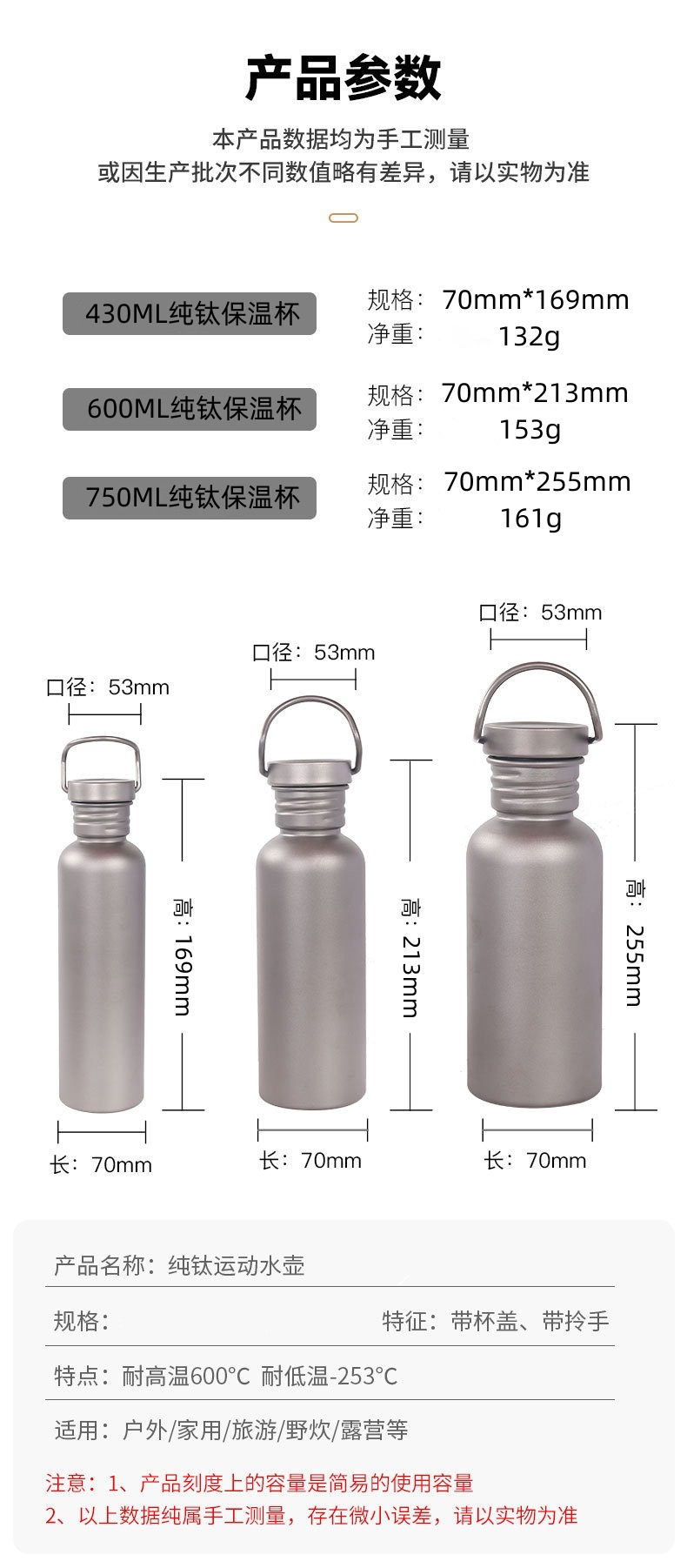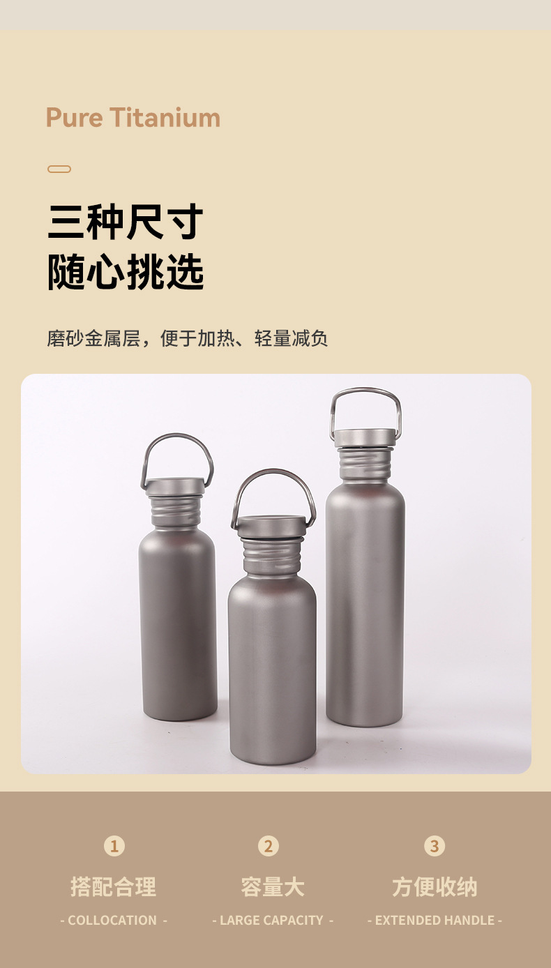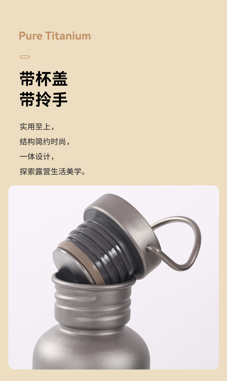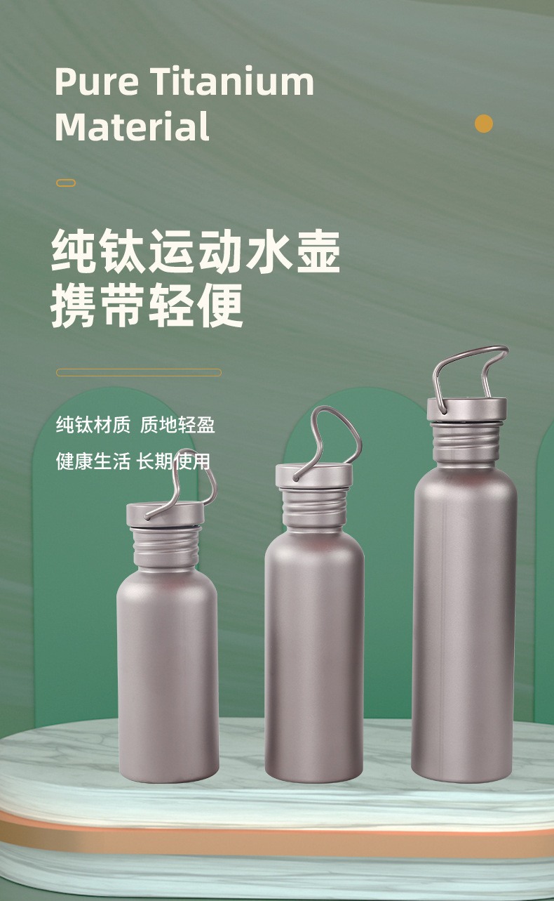 순수 티타늄 스포츠 주전자 야외 캠핑 등산 여행 사이클링 전문 신선한 유지 티타늄 물 컵 대용량 단일 레이어 물병