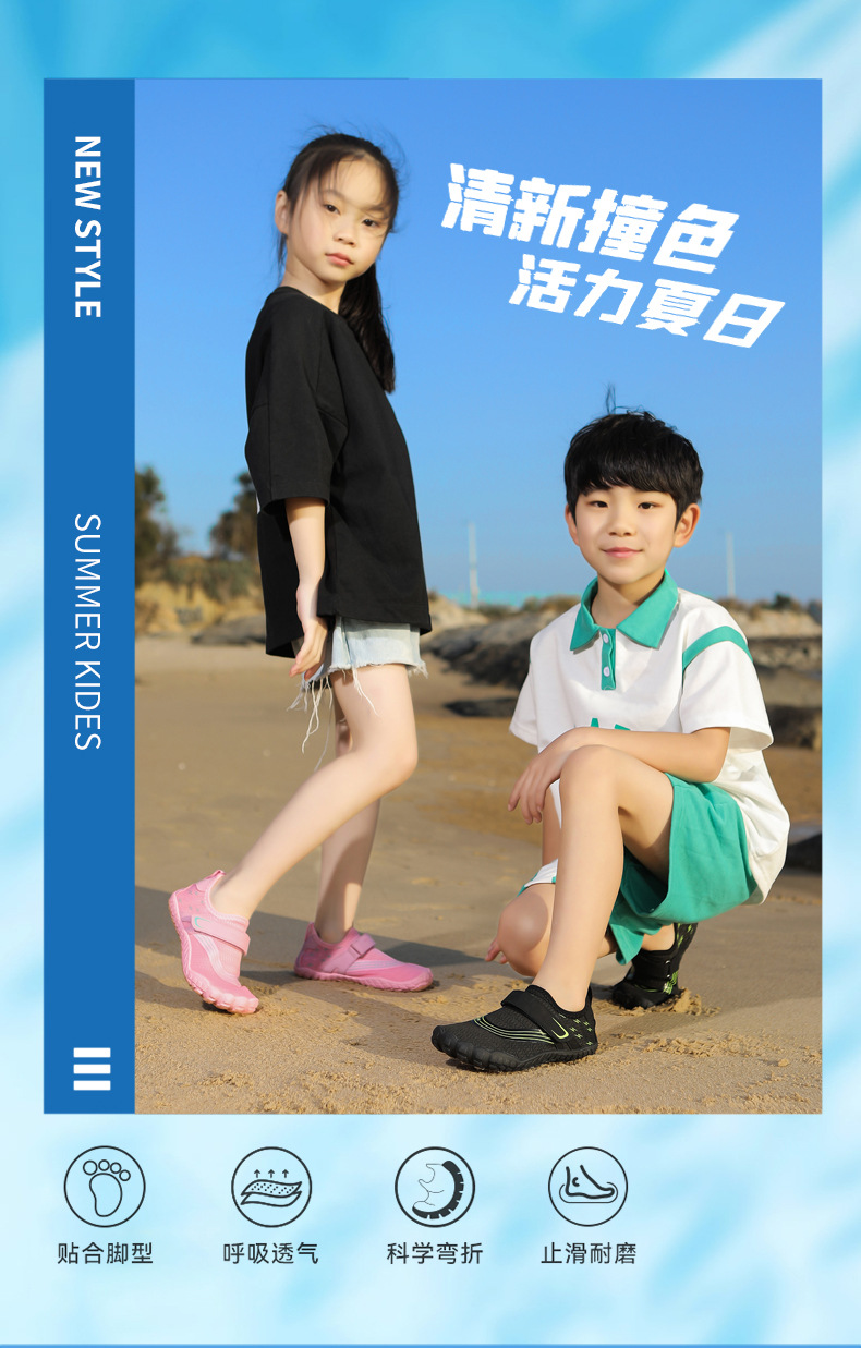 새로운 크로스 보더 어린이 트레이싱 신발 통기성 속건 벨크로 어린이 물 놀이 비치 신발 소년 소녀 신발 신발 부드러운