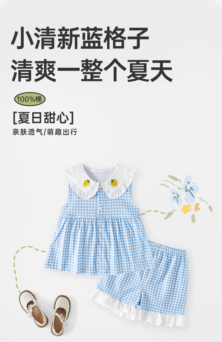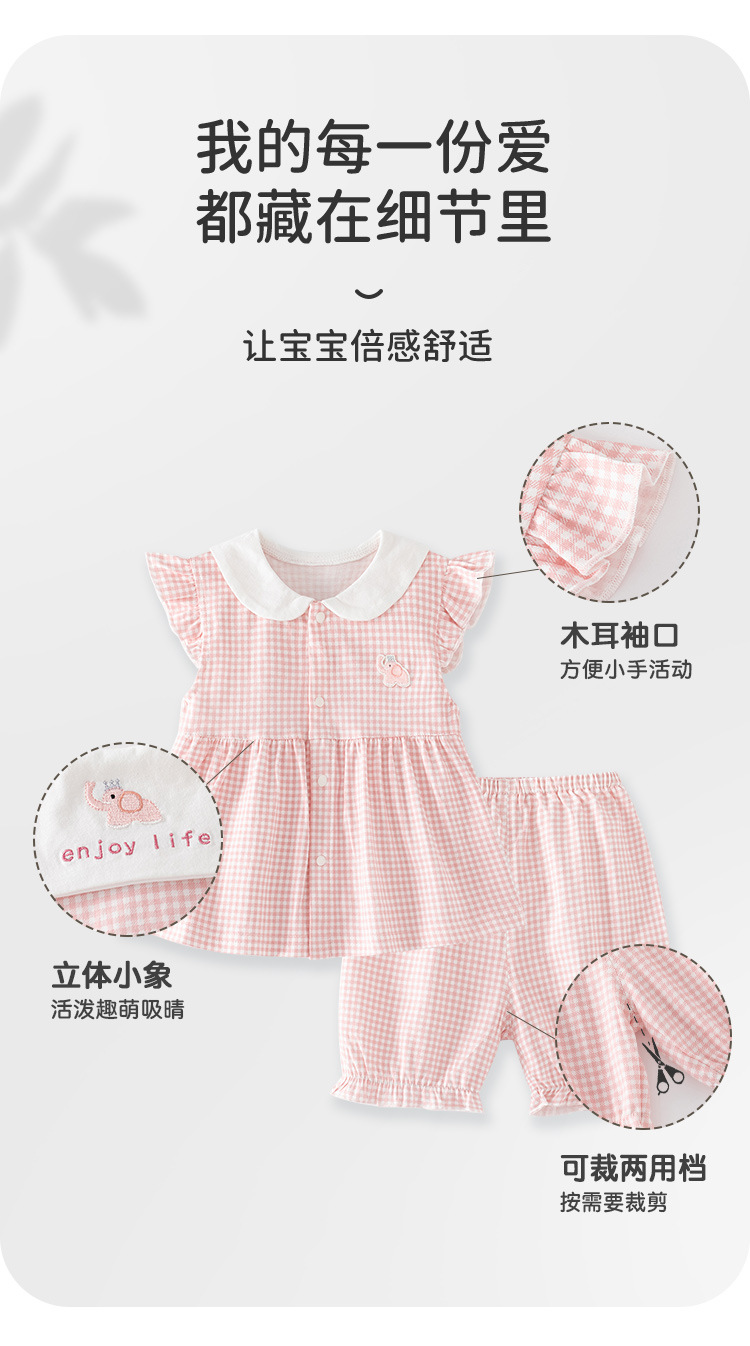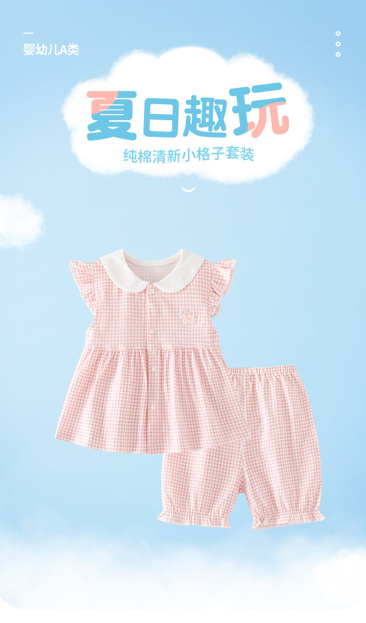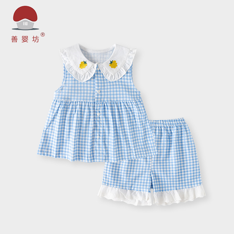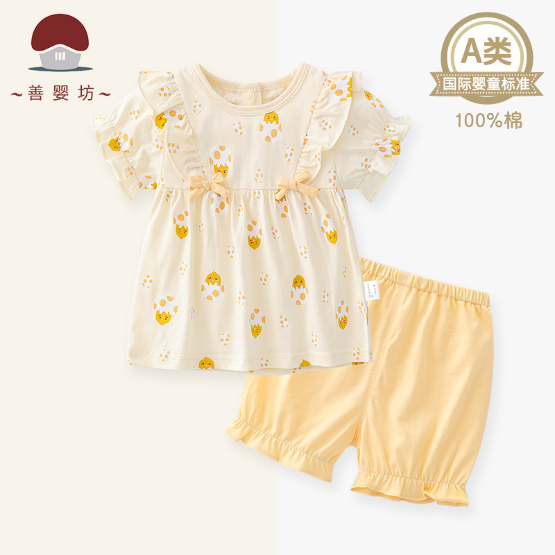 Shanyingfang의 새로운 여아 여름복 세트, 공주풍, 귀엽고 세련된 외출복, 반팔 투피스 세트, 0-5세스토어 가기