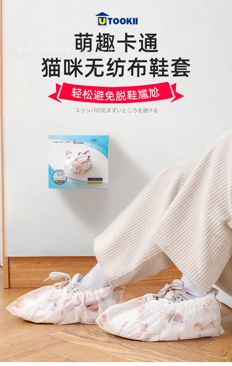 Utokii 일본 일회용 인쇄 만화 신발 커버 하이 퀄리티 부직포 두꺼운 가정용 미끄럼 방지 내마모성 발 커버