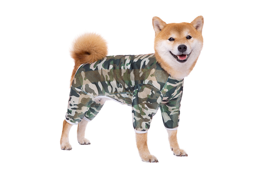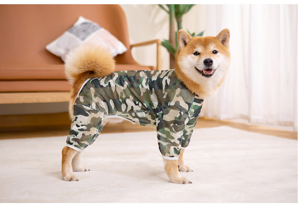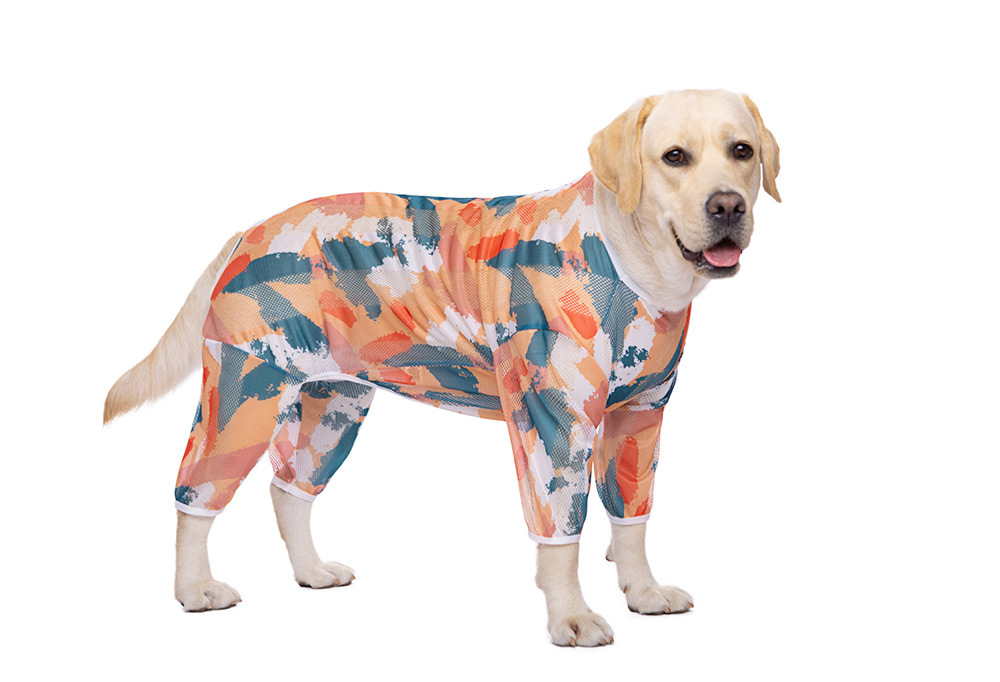 봄과 가을 여름 메쉬 프린트 래브라도 개 골든 리트리버 중형 및 대형 개 네 다리 크로스 보더 애완 동물 개 의류
