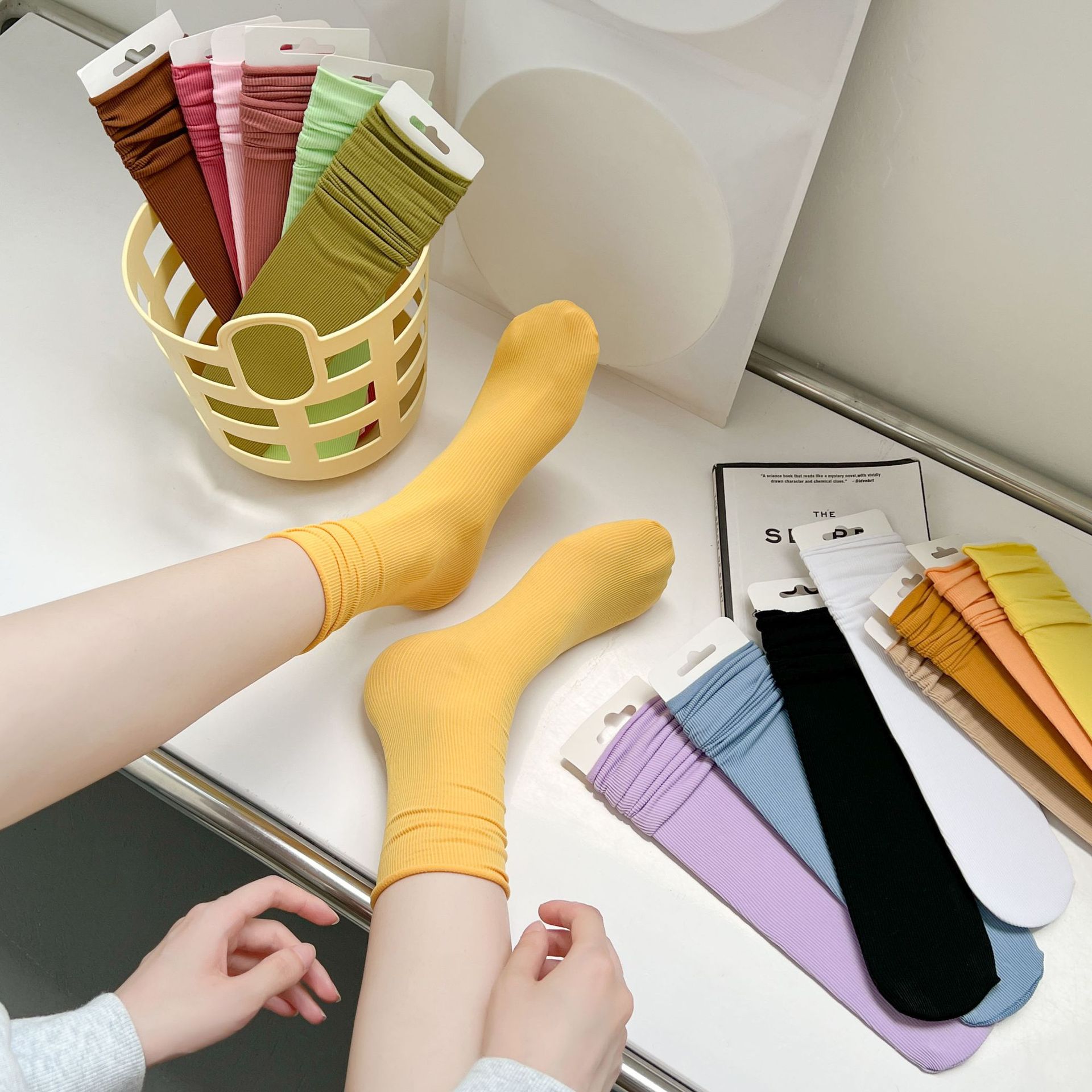 아이스 아이스 양말 여성용 중간 길이 양말 여름 얇은 인 트렌디 한 인터넷 레드 화이트 벨벳 아이스 실크 여름 긴 스택 양말스토어 가기