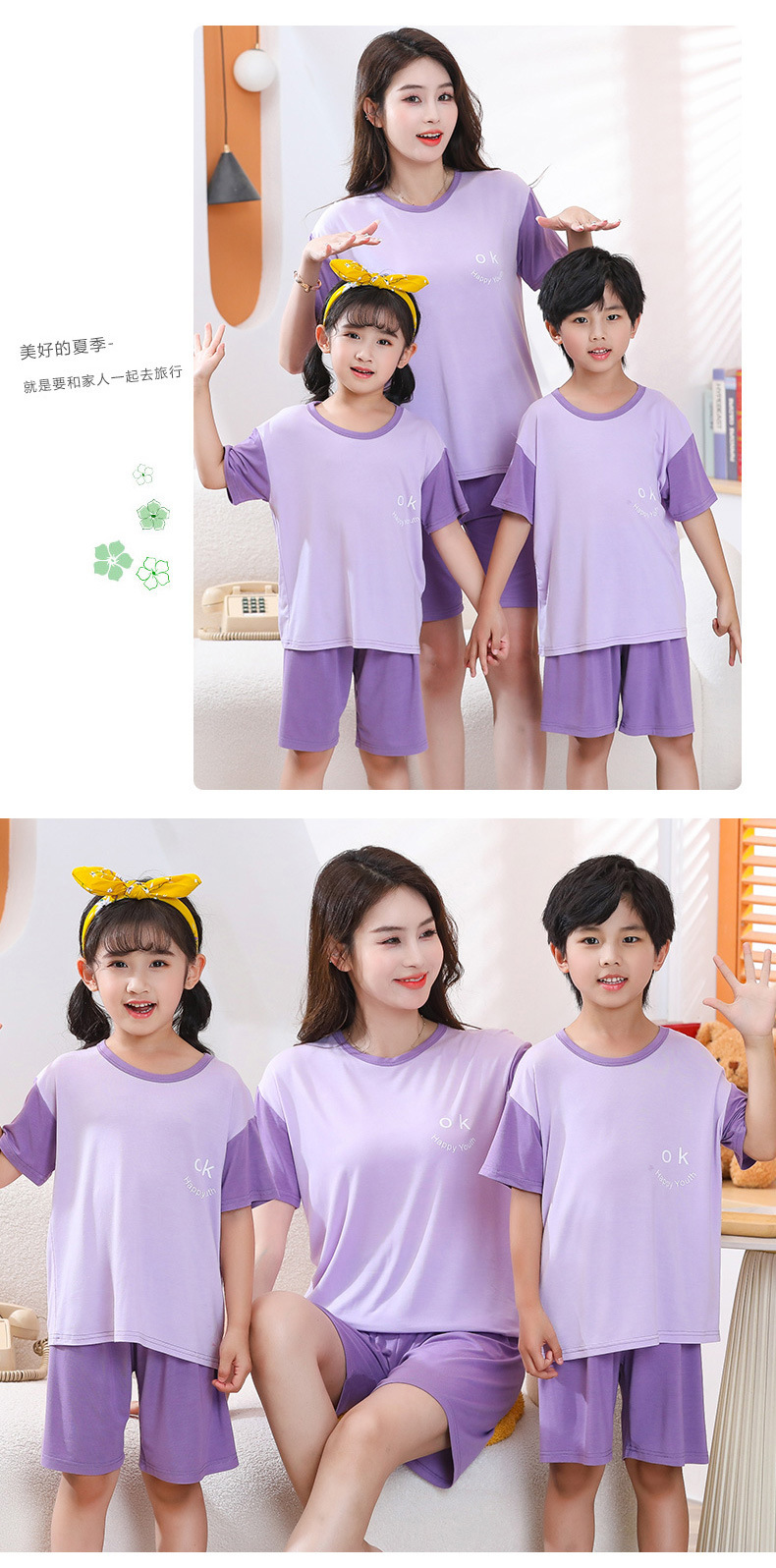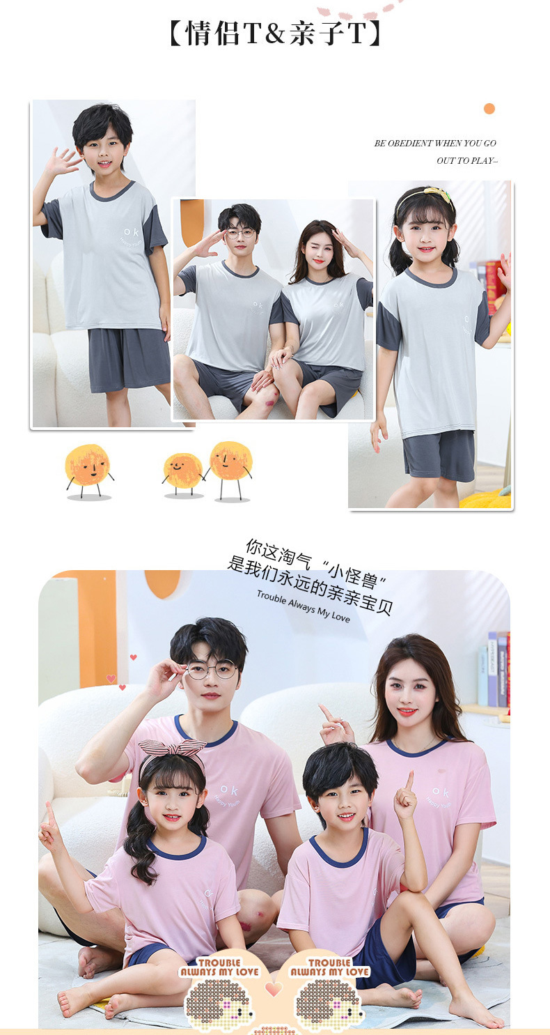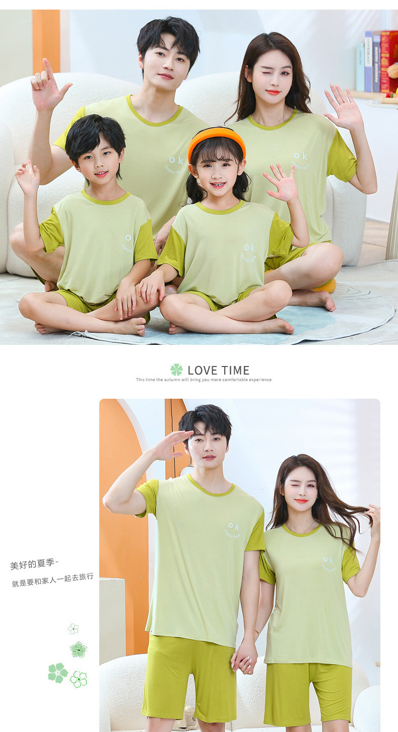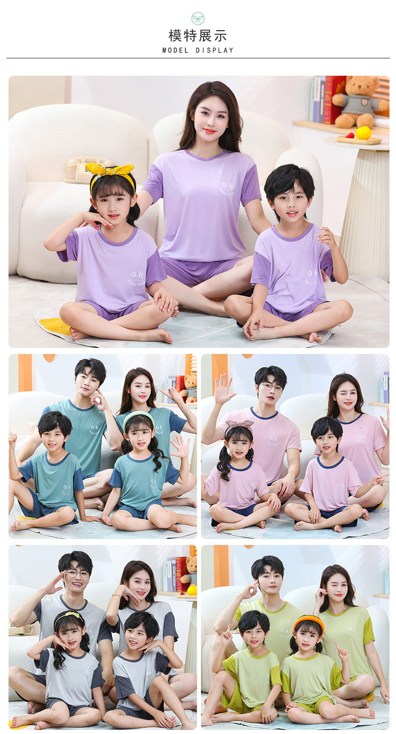 2亲子款莫代尔空调服 夏季薄款家居服男女童宝宝短袖短裤套装睡2
