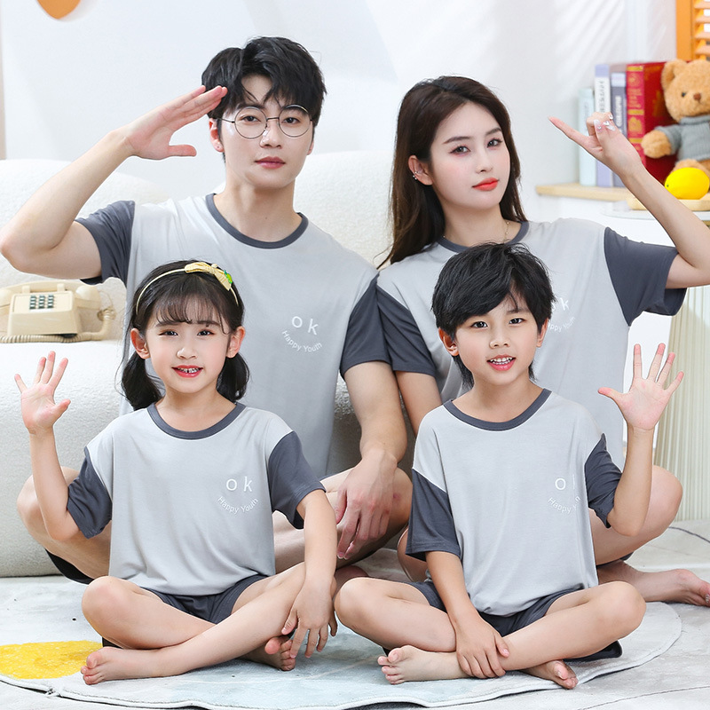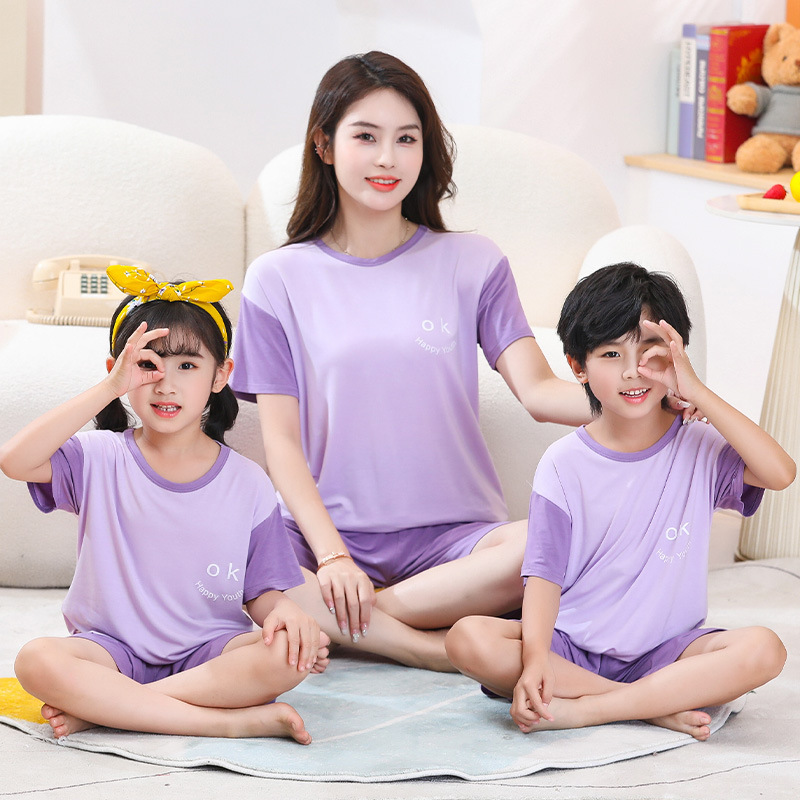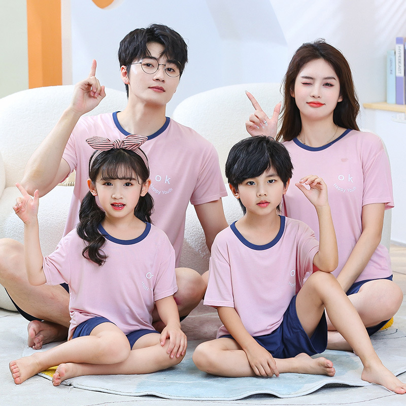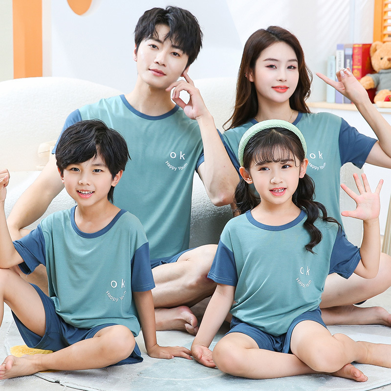 여름 부모-자식 모달 에어컨 의류 얇은 가정 옷 소년과 소녀 아기 반팔 반바지 세트 잠옷스토어 가기