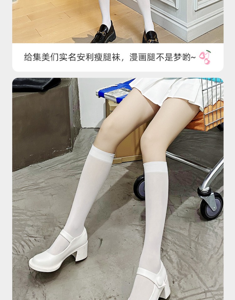 흑백 양말 여성용 봄 여름 새끼 양말 학생 긴 양말 얇은 압력 슬림 다리 벨벳 무릎 위 양말