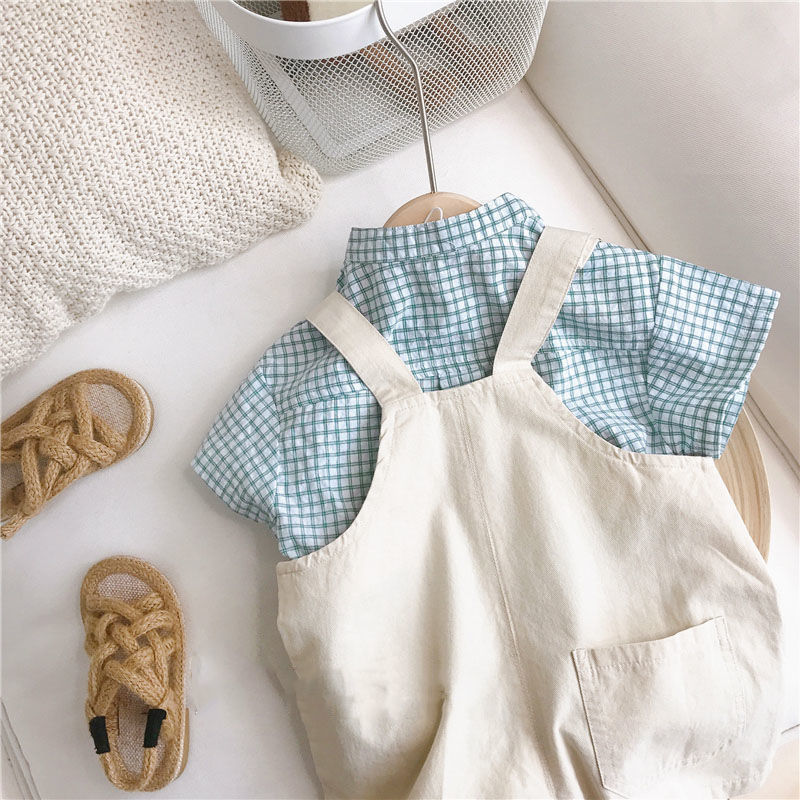 • 파란색과 녹색 체크무늬 [체크무늬 멜빵바지 정장]