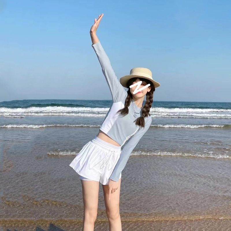 여성용 스플릿 수영복, 플러스 사이즈, 보수적, 배를 커버해 날씬해 보이는 학생 수영장 전용, 고급스러운 긴팔, 자외선 차단, 온천욕에 적합
