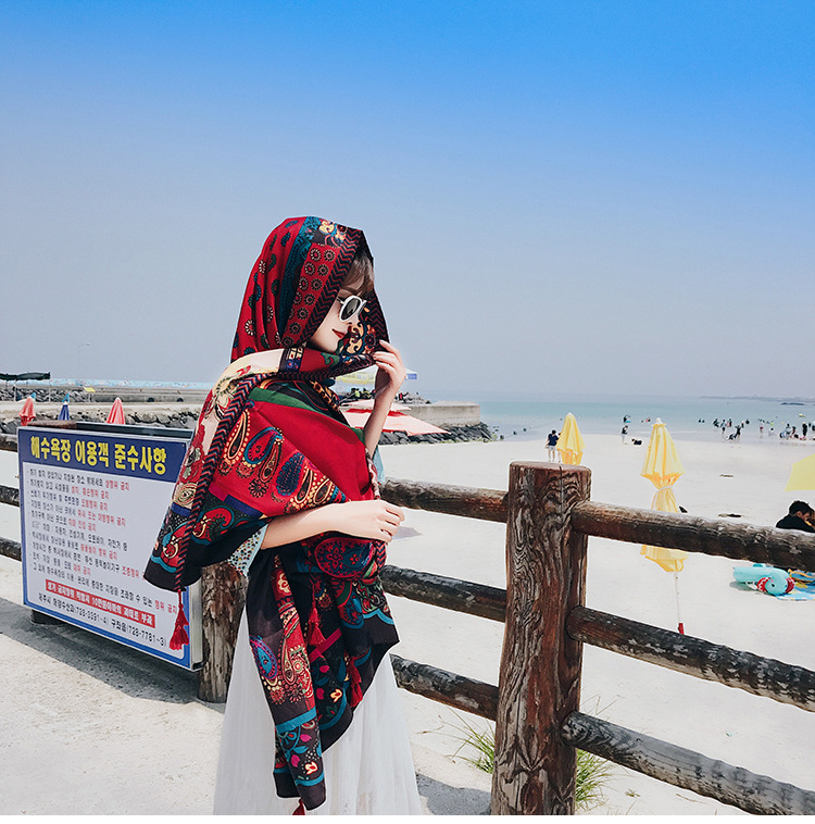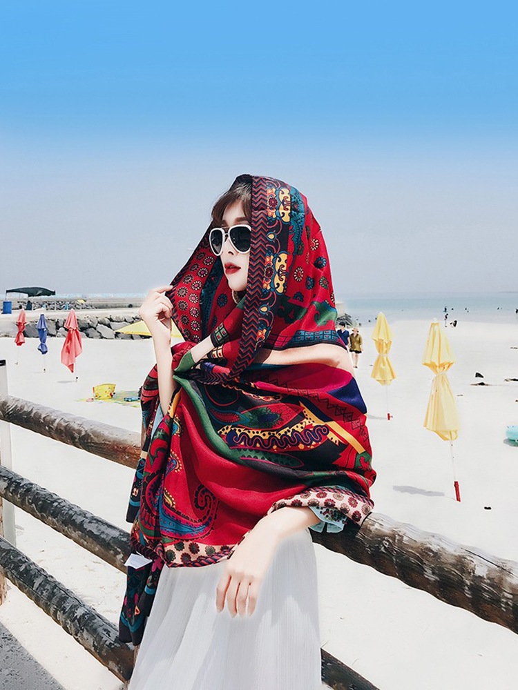 여름 봄 숄 산야 민족 관광 실크 스카프 해변 얇은 비치 스카프 자외선 차단제 스카프 여성