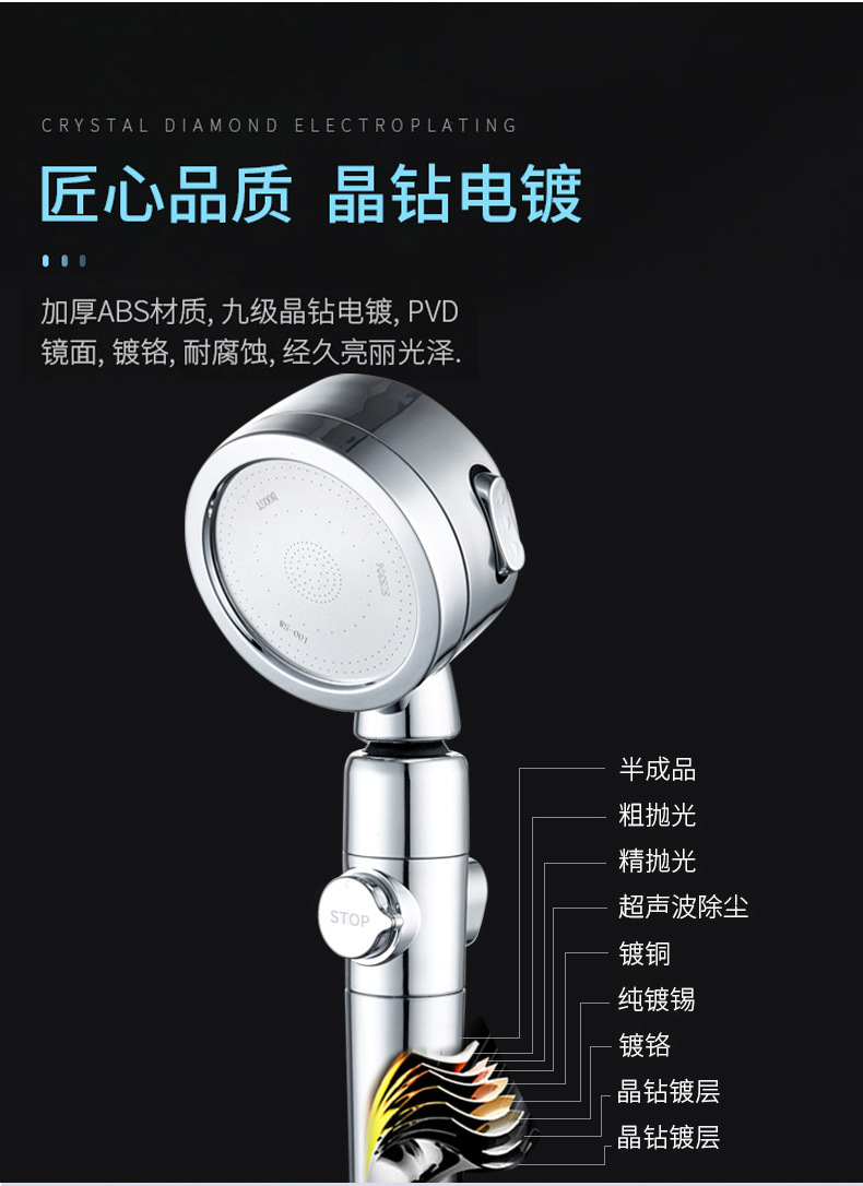 업그레이드된 크로스 보더 가압 전기도금 샤워 노즐 플러스 빗물 목욕 샤워 노즐 온수기 싱글 헤드 샤워 헤드