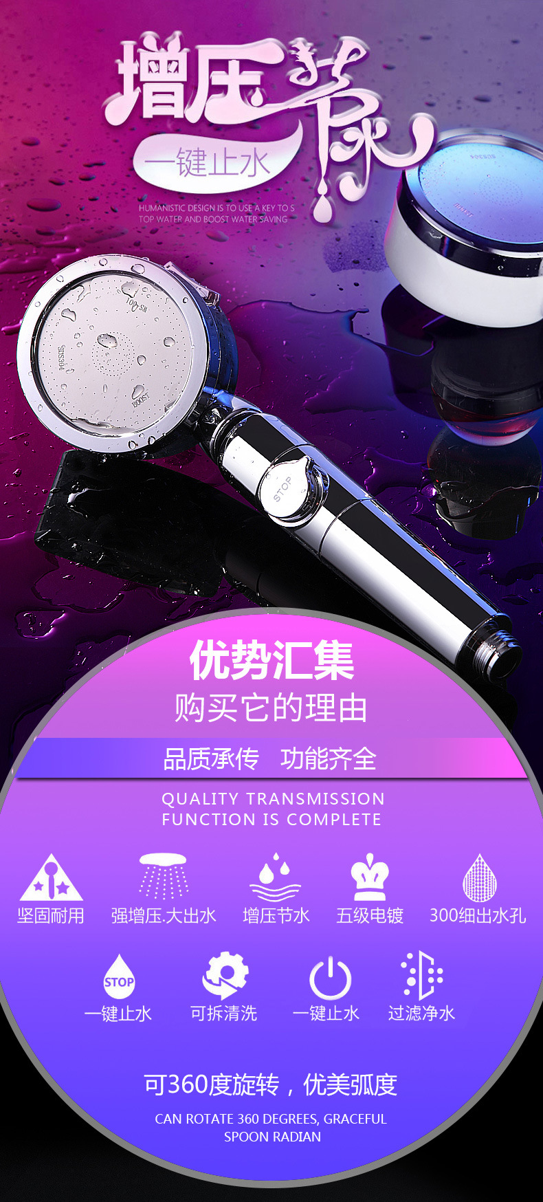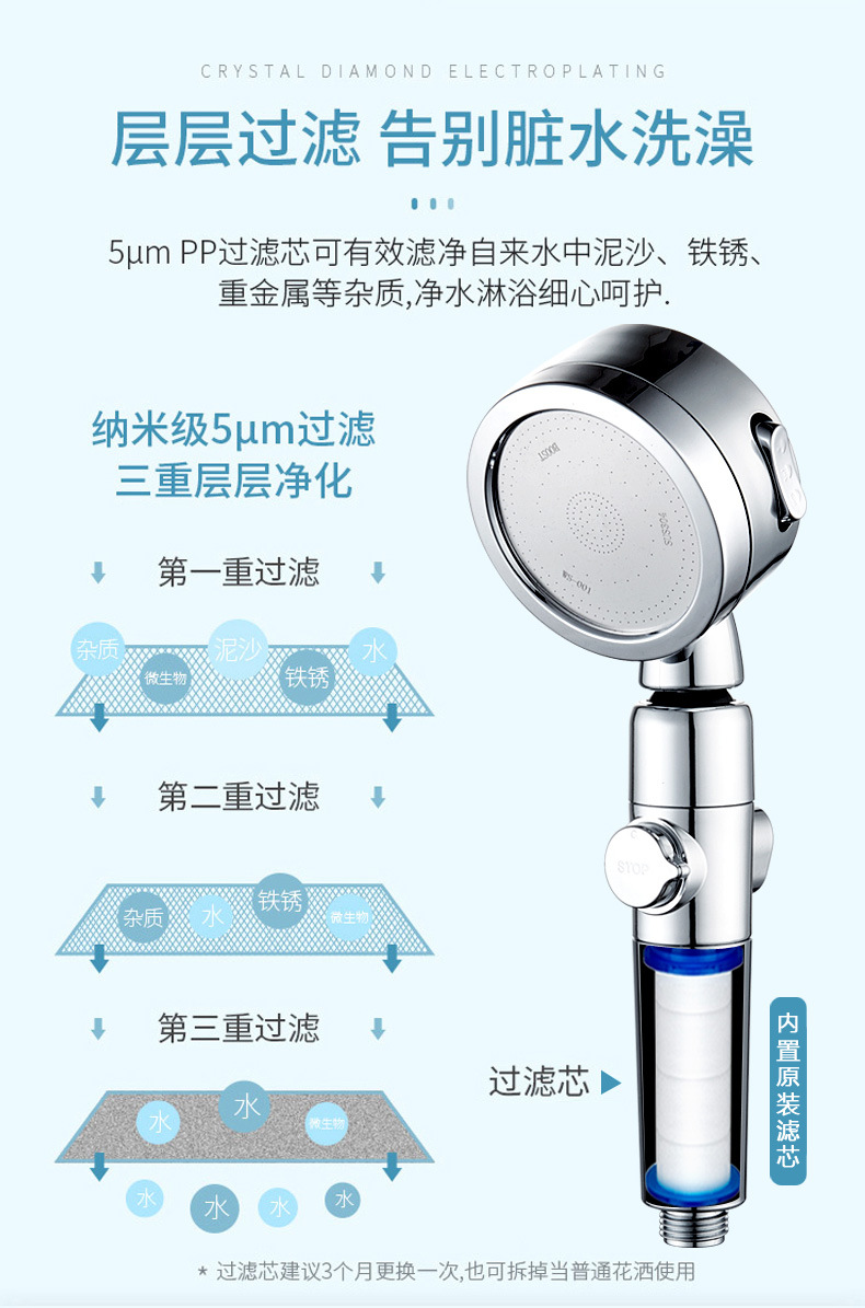 업그레이드된 크로스 보더 가압 전기도금 샤워 노즐 플러스 빗물 목욕 샤워 노즐 온수기 싱글 헤드 샤워 헤드스토어 가기