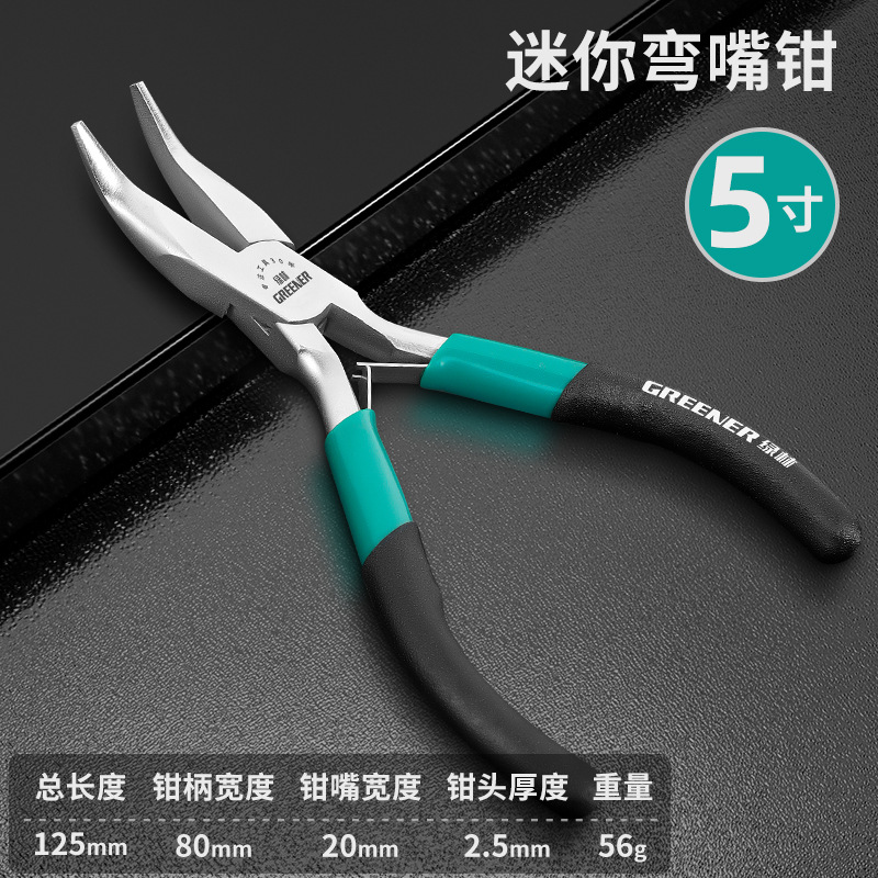 녹색 숲 바늘 코 펜치 미니 5 인치 다기능 상단 컷 비스듬한 평평한 입 곡선 입 작은 펜치 DIY 수동 날카로운 입 펜치