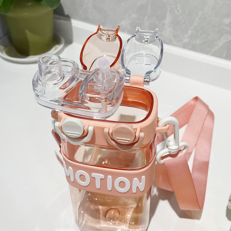 펑크 물 컵 소녀 고가 플라스틱 고온 귀여운 인터넷 인기 더블 마시는 컵 빨대 휴대용 주전자 학생스토어 가기