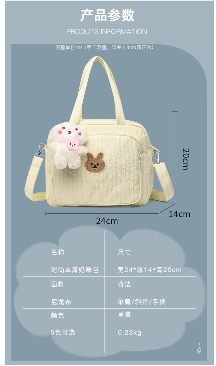 원래 한국식 인 휴대용 아기 가방 휴대용 스몰 사이즈 크로스바디 접이식 자수 주름 질감 미라 가방