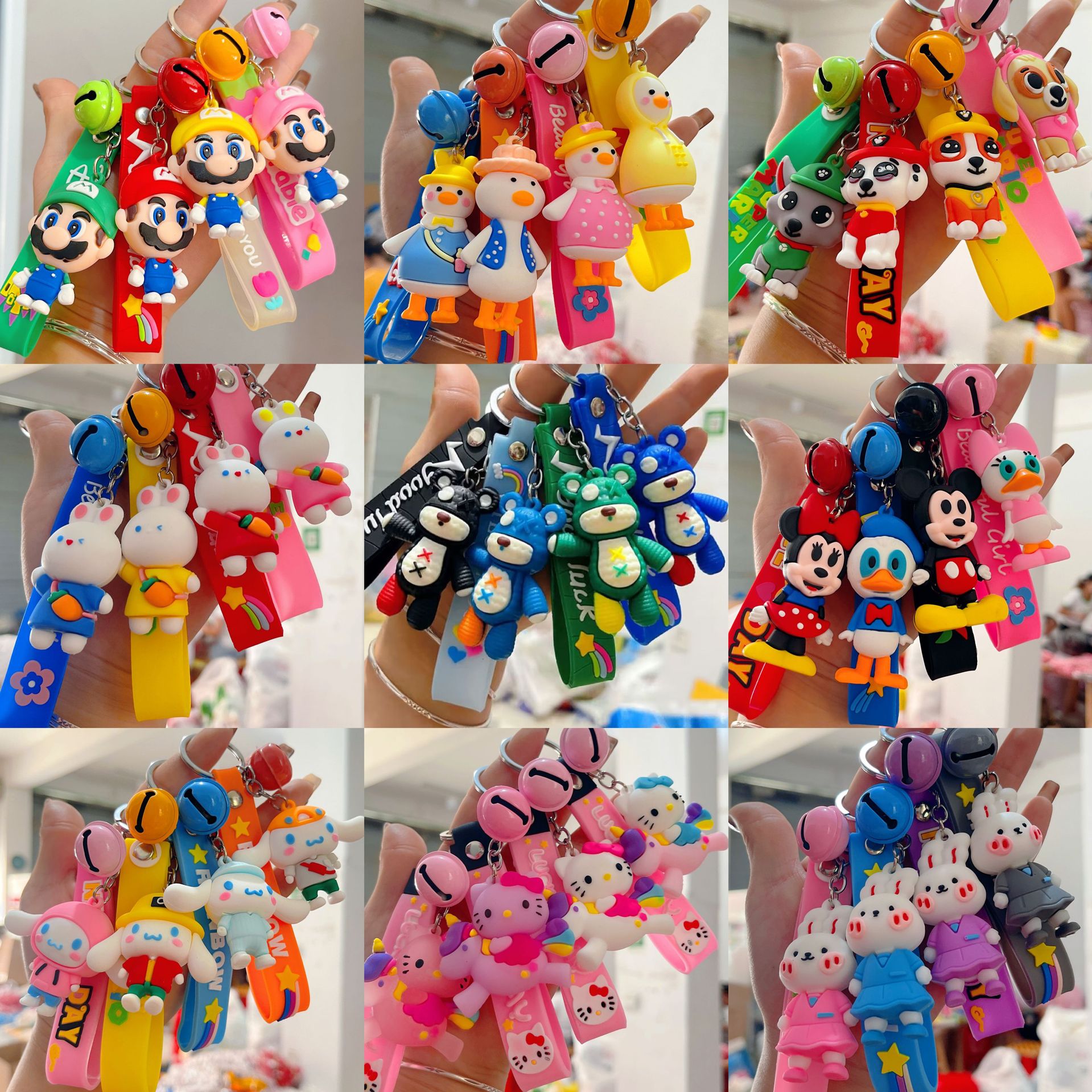 새로운 만화 공룡 열쇠 고리 가방 펜던트 입체 곰 마리오 인형 기계 선물 장난감 도매