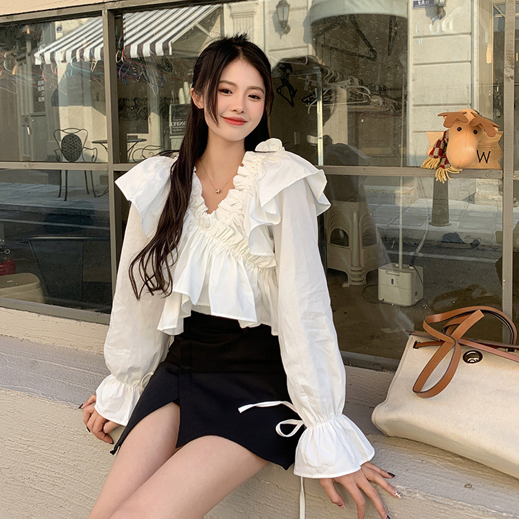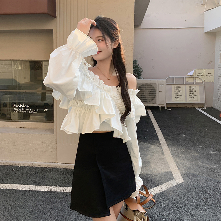 프렌치 스타일 플러스 사이즈 오프숄더 탑 여성용 새로운 디자인 감각 틈새 시크 오프숄더 스위트 올매치 셔츠