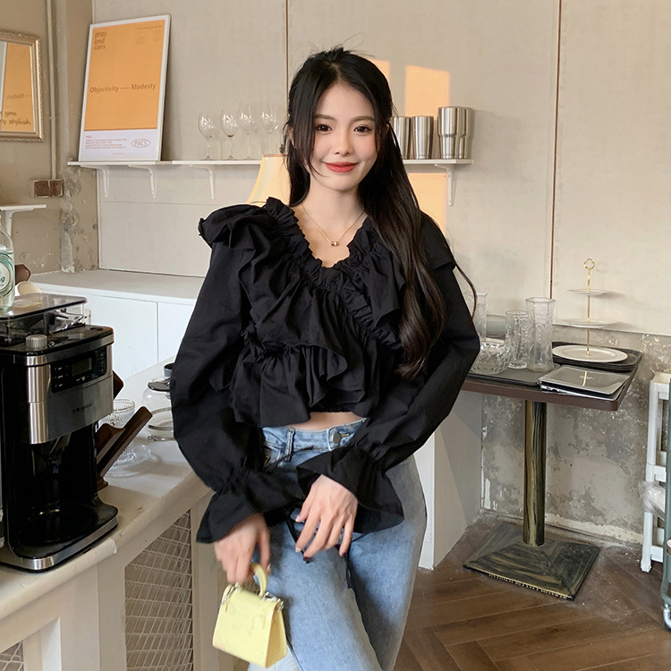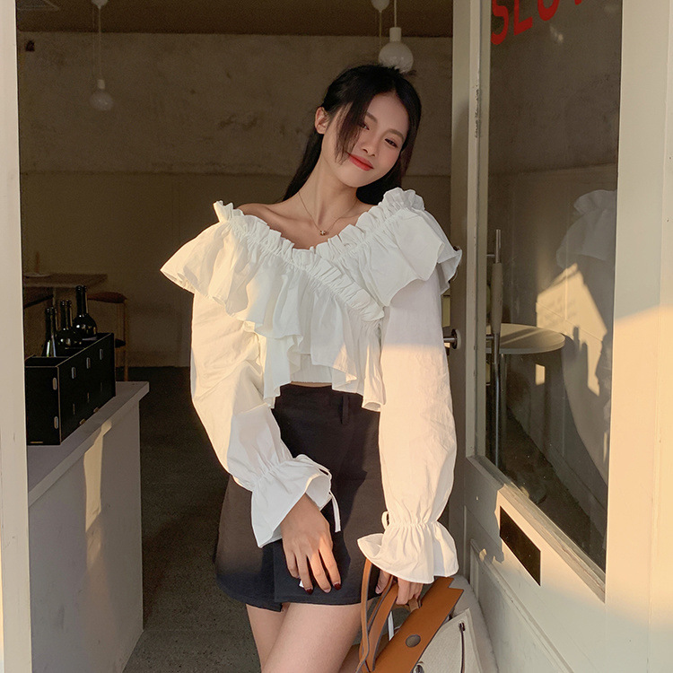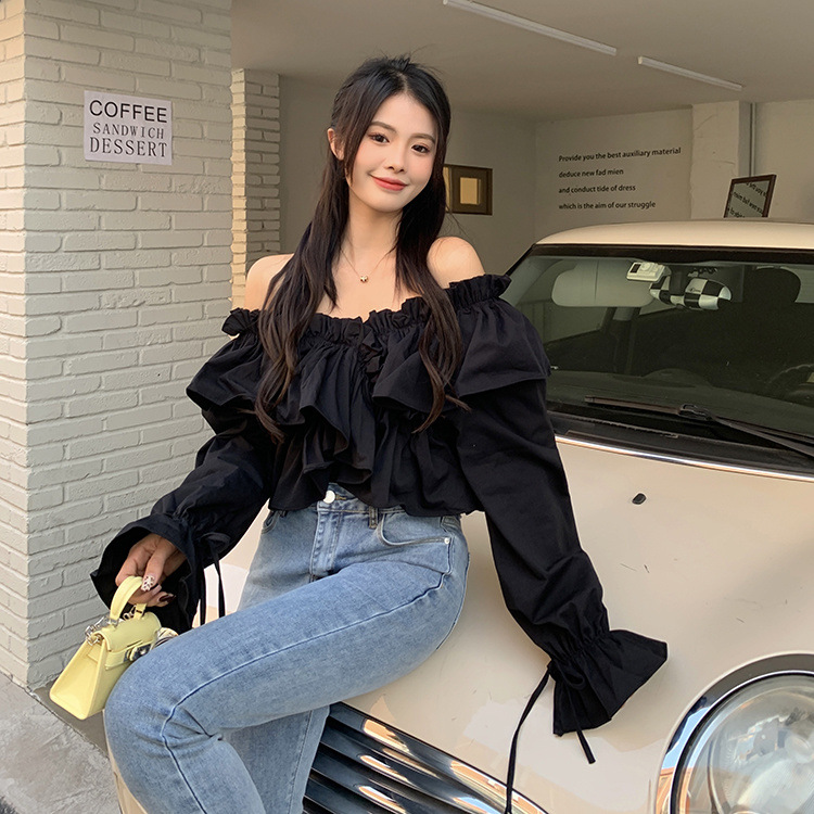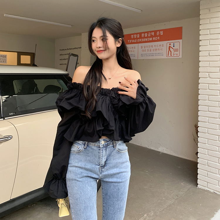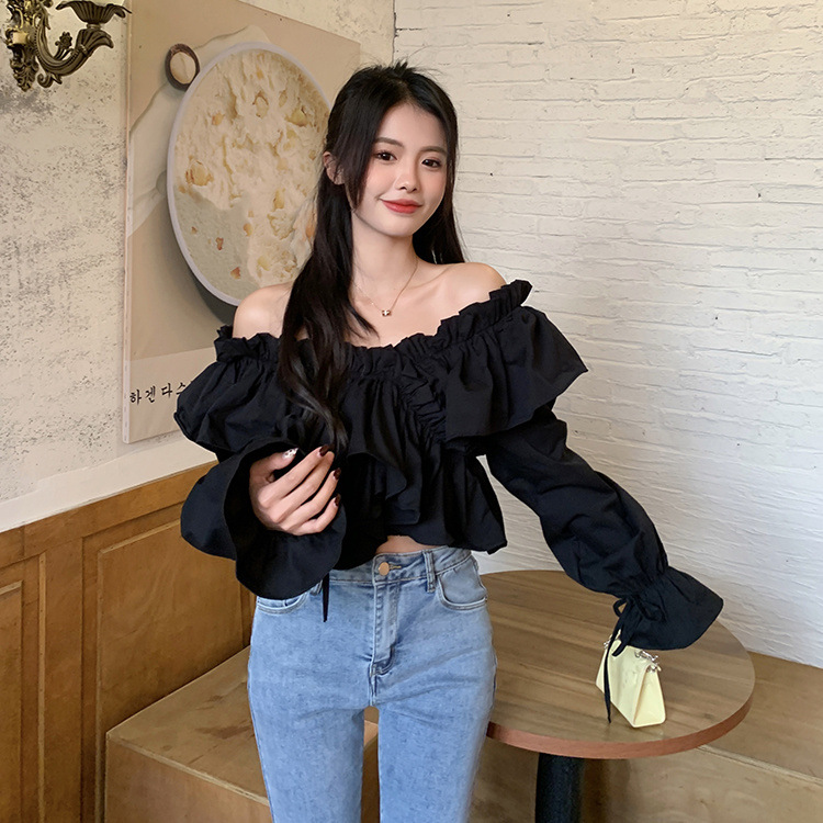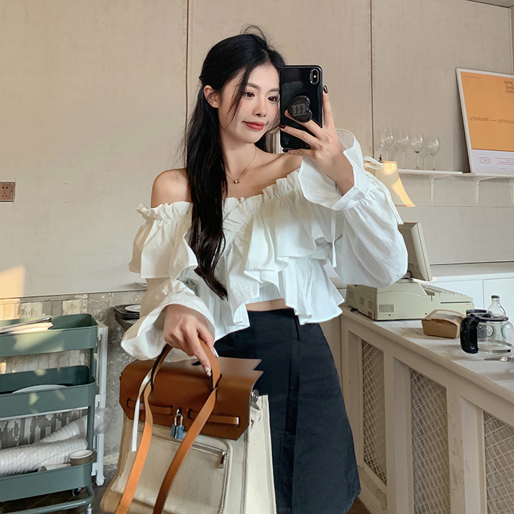 프렌치 스타일 플러스 사이즈 오프숄더 탑 여성용 새로운 디자인 감각 틈새 시크 오프숄더 스위트 올매치 셔츠스토어 가기