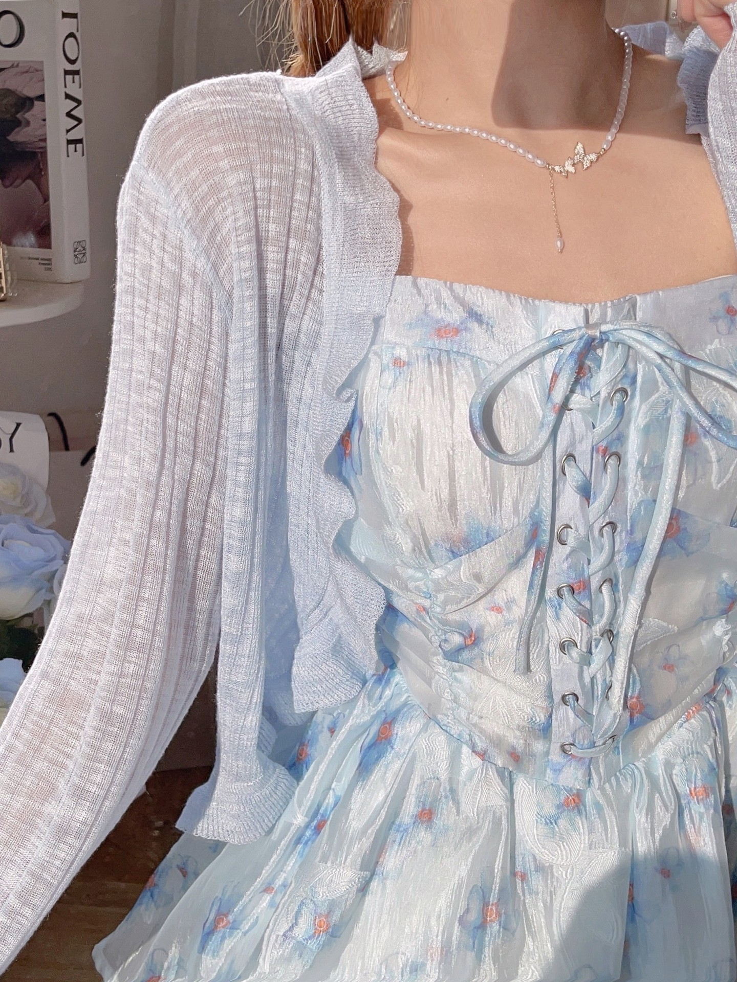 곰팡이 가장자리 아이스 실크 니트 자외선 차단제 카디건 얇은 여성용 숄 여름 스커트 슬링 작은 닦아 외부 블라우스스토어 가기