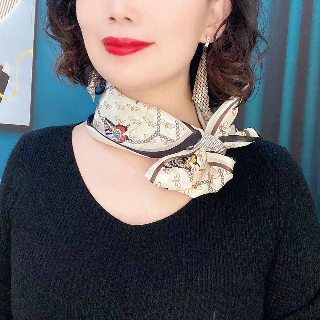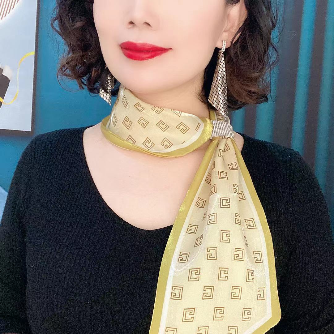 새로운 스타일 Qingfeng 원사 인쇄 스카프 모든 일치 기질 원사 스카프 스카프 작은 귀 실크 스카프 패션 두 다이아몬드 귀 스카프 여성스토어 가기