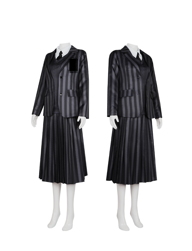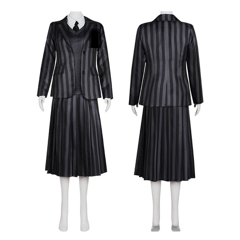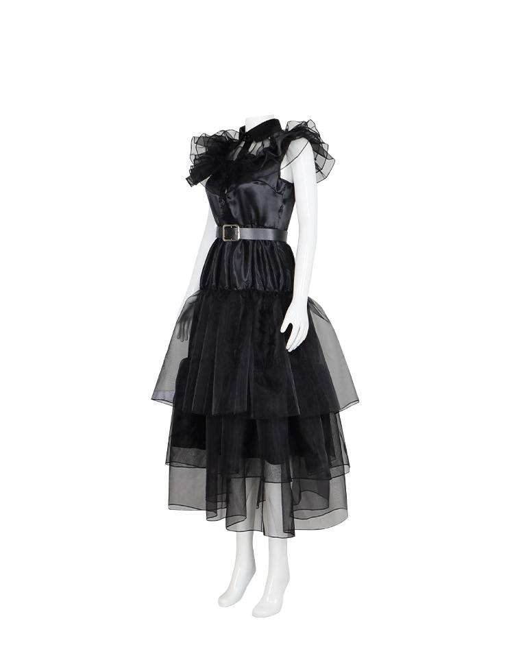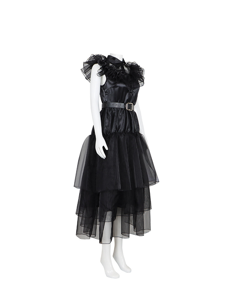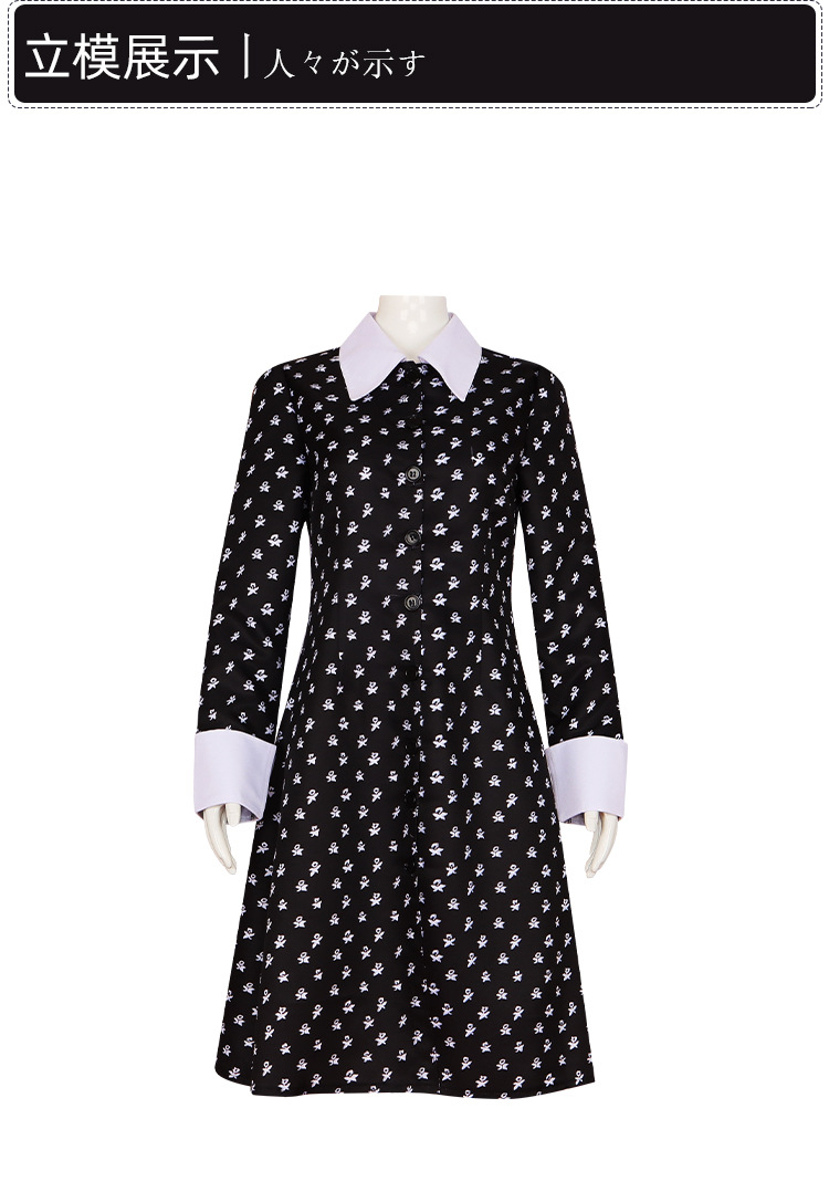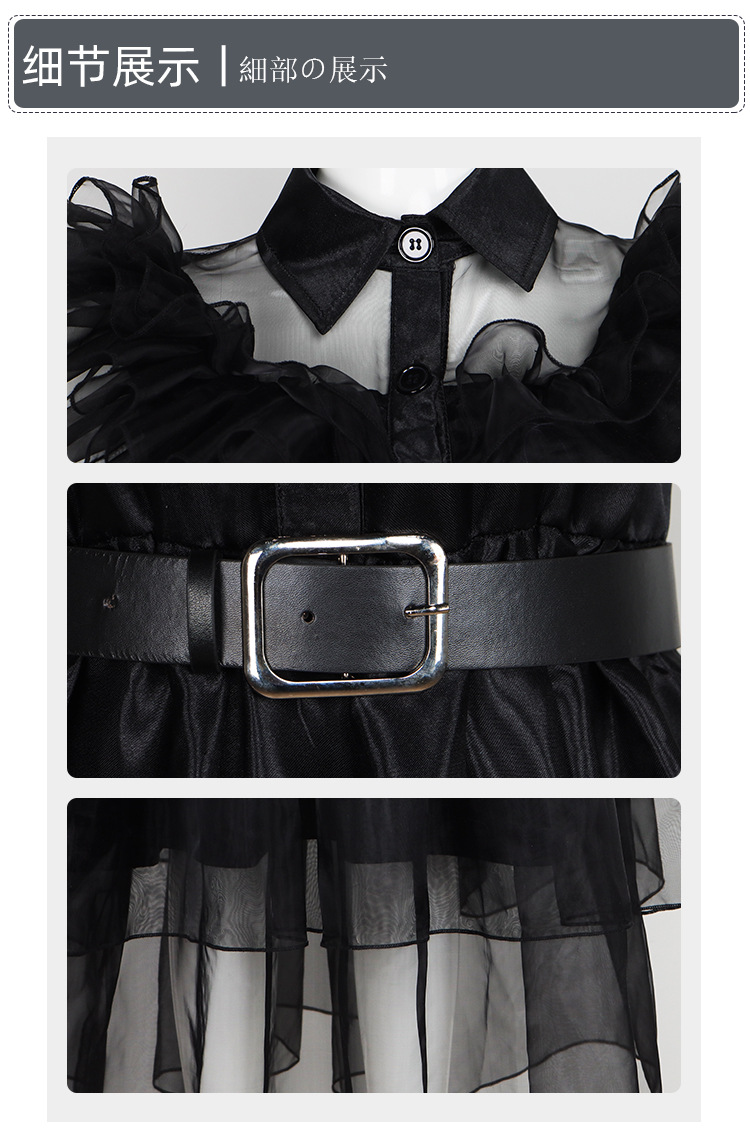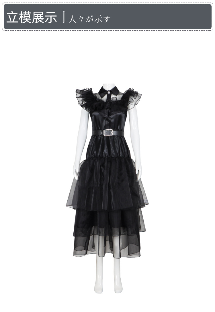 할로윈 공연을위한 아담스의 cos 의상은 수요일의 여성 의상 코스프레 검은 원피스 동일합니다