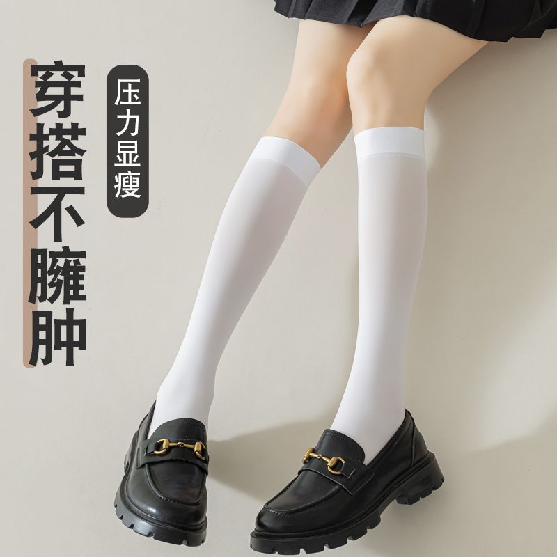 작은 다리 양말 봄과 여름 스타킹 얇은 양말 여성의 하프 jK 튜브 양말 흰색 압력 무릎 높이 다리 스타킹스토어 가기