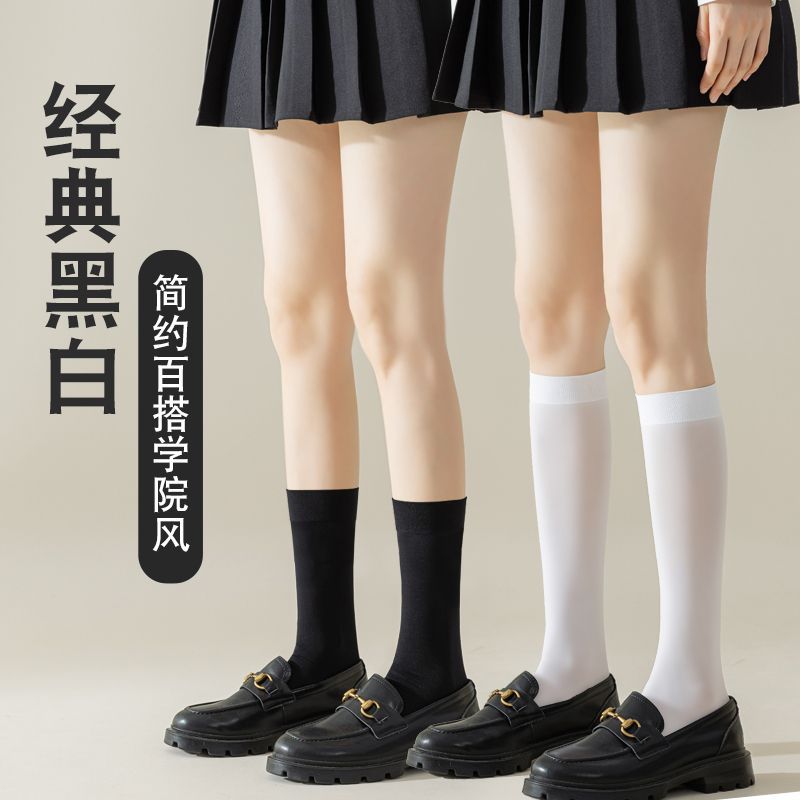 작은 다리 양말 봄과 여름 스타킹 얇은 양말 여성의 하프 jK 튜브 양말 흰색 압력 무릎 높이 다리 스타킹