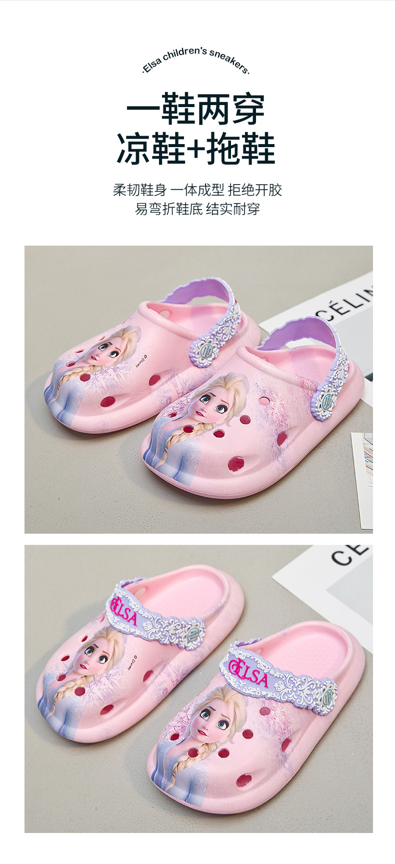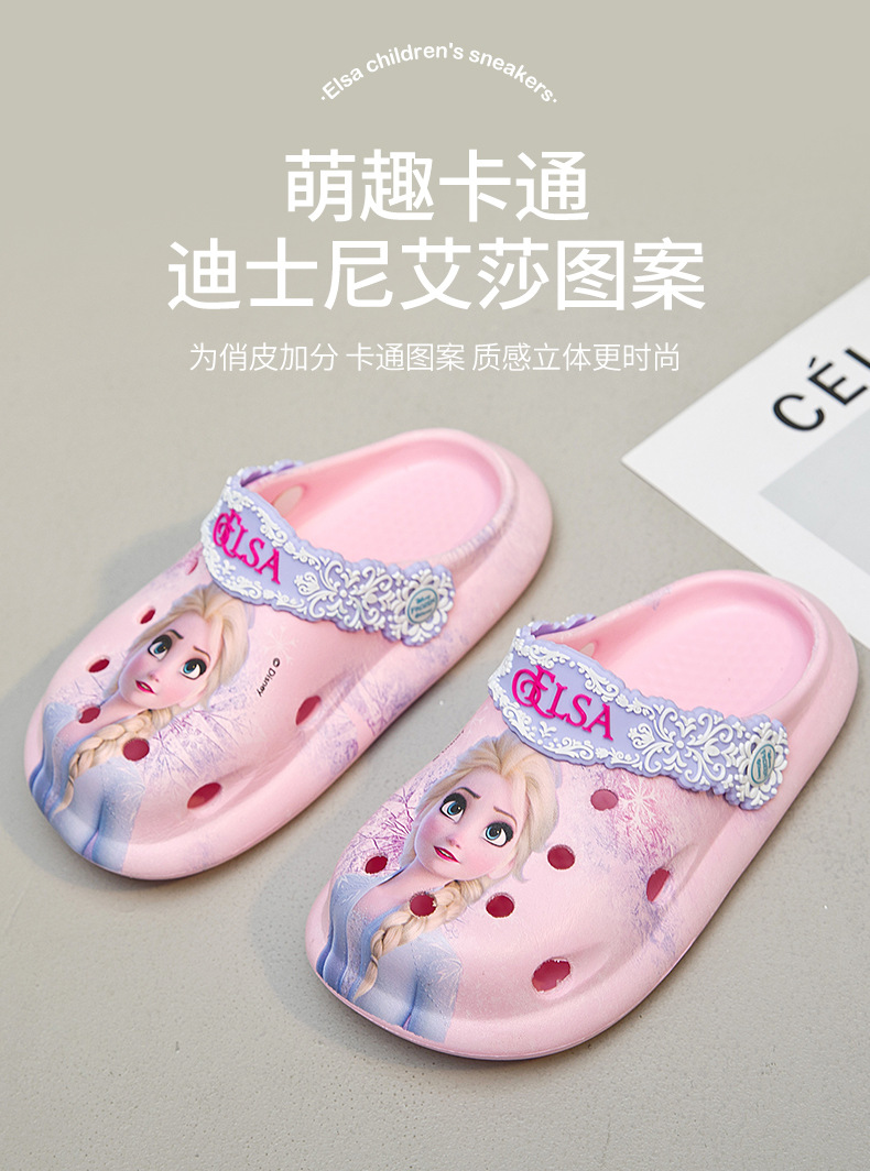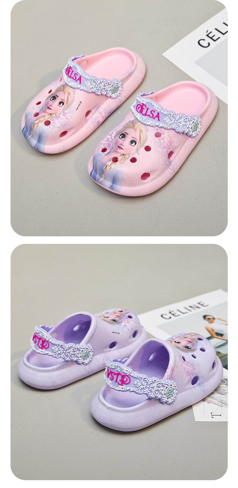 디즈 공주 슬리퍼 여름 목욕용 미끄럼 방지 어린이 슬리퍼 소녀 실내 만화 귀여운 앞코가 막힌 샌들