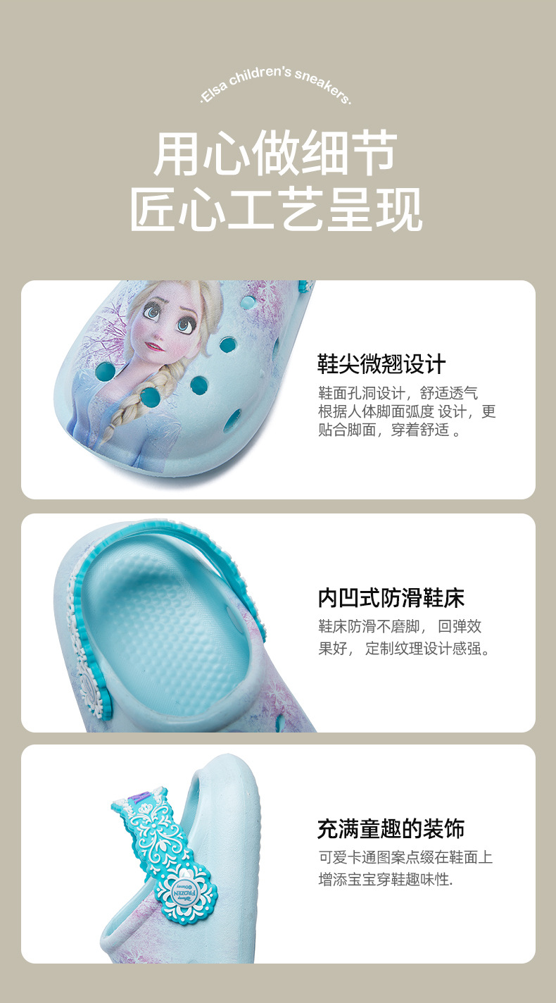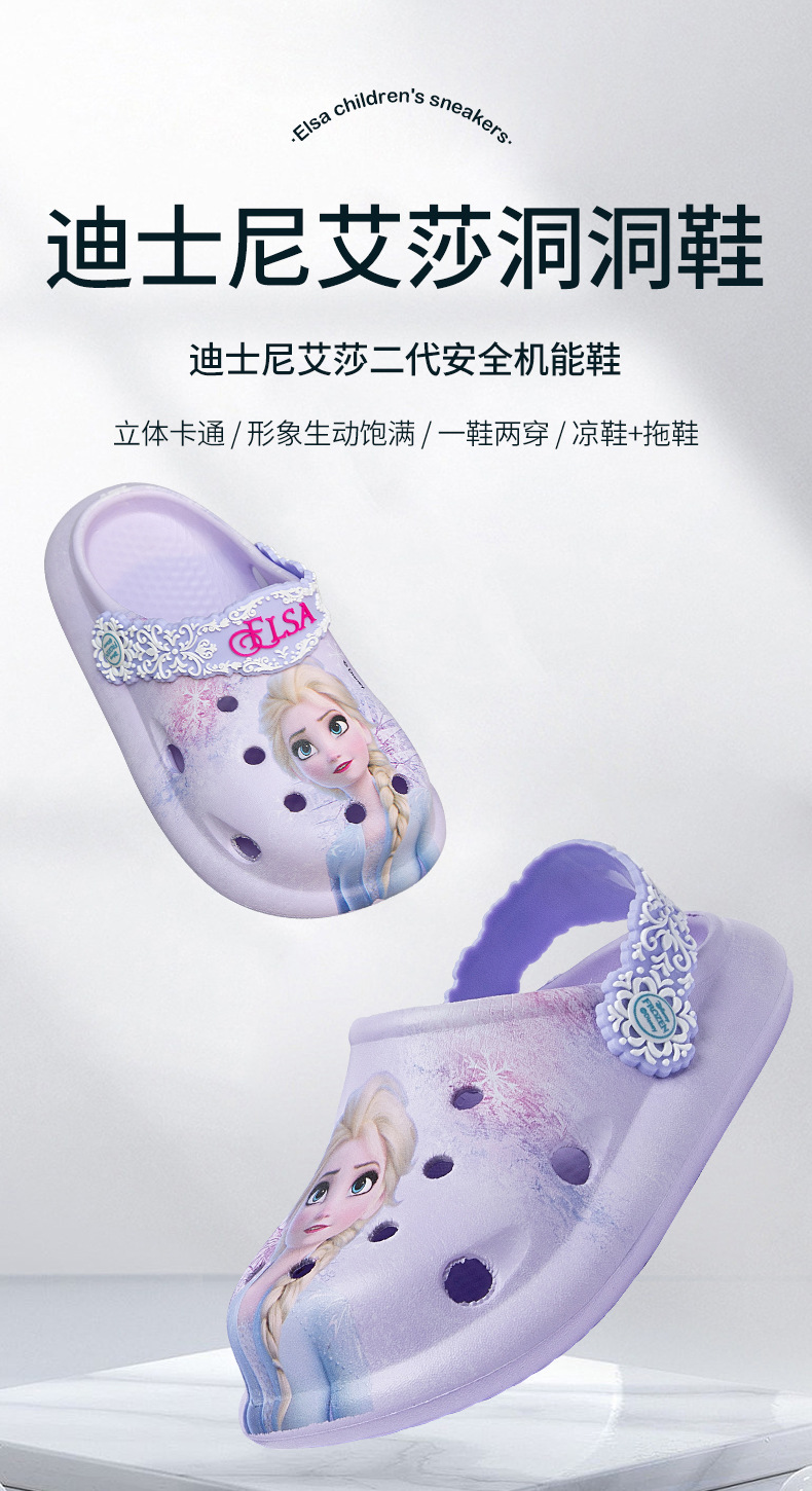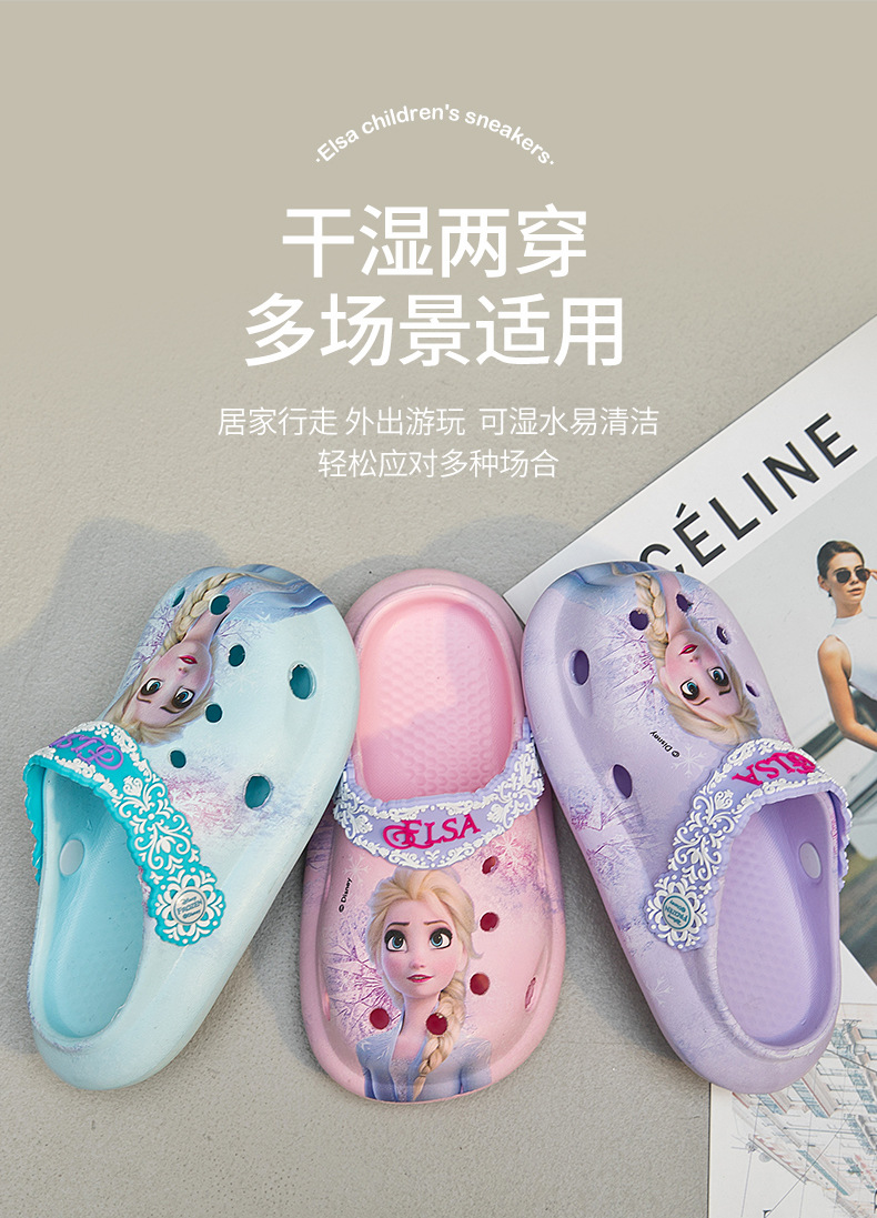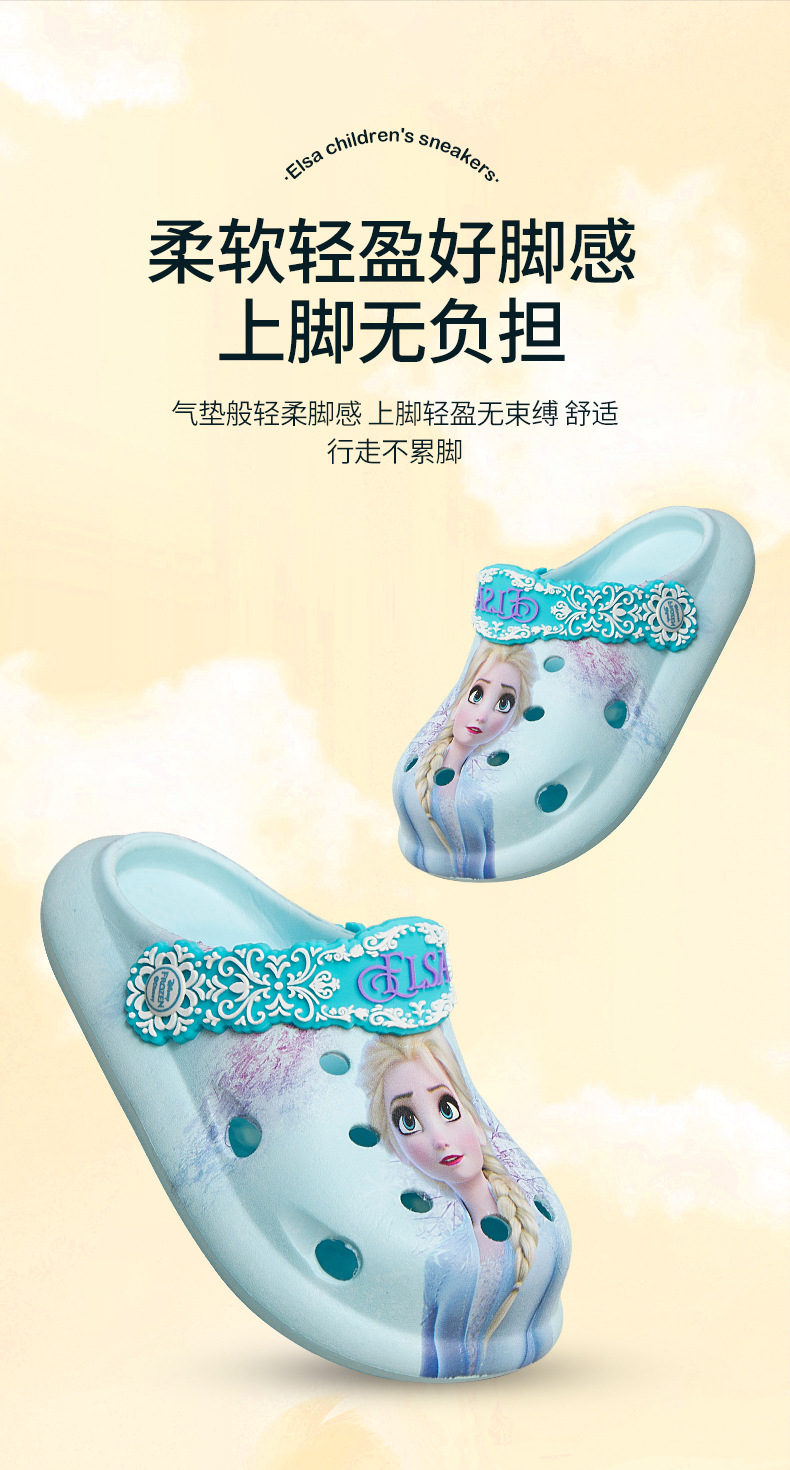 디즈 공주 슬리퍼 여름 목욕용 미끄럼 방지 어린이 슬리퍼 소녀 실내 만화 귀여운 앞코가 막힌 샌들