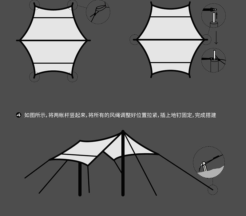 캐노피 텐트 야외 캠핑 공원 캠핑 코팅 그늘 천 육각 커튼 나비 전망대 캐노피 풀 세트